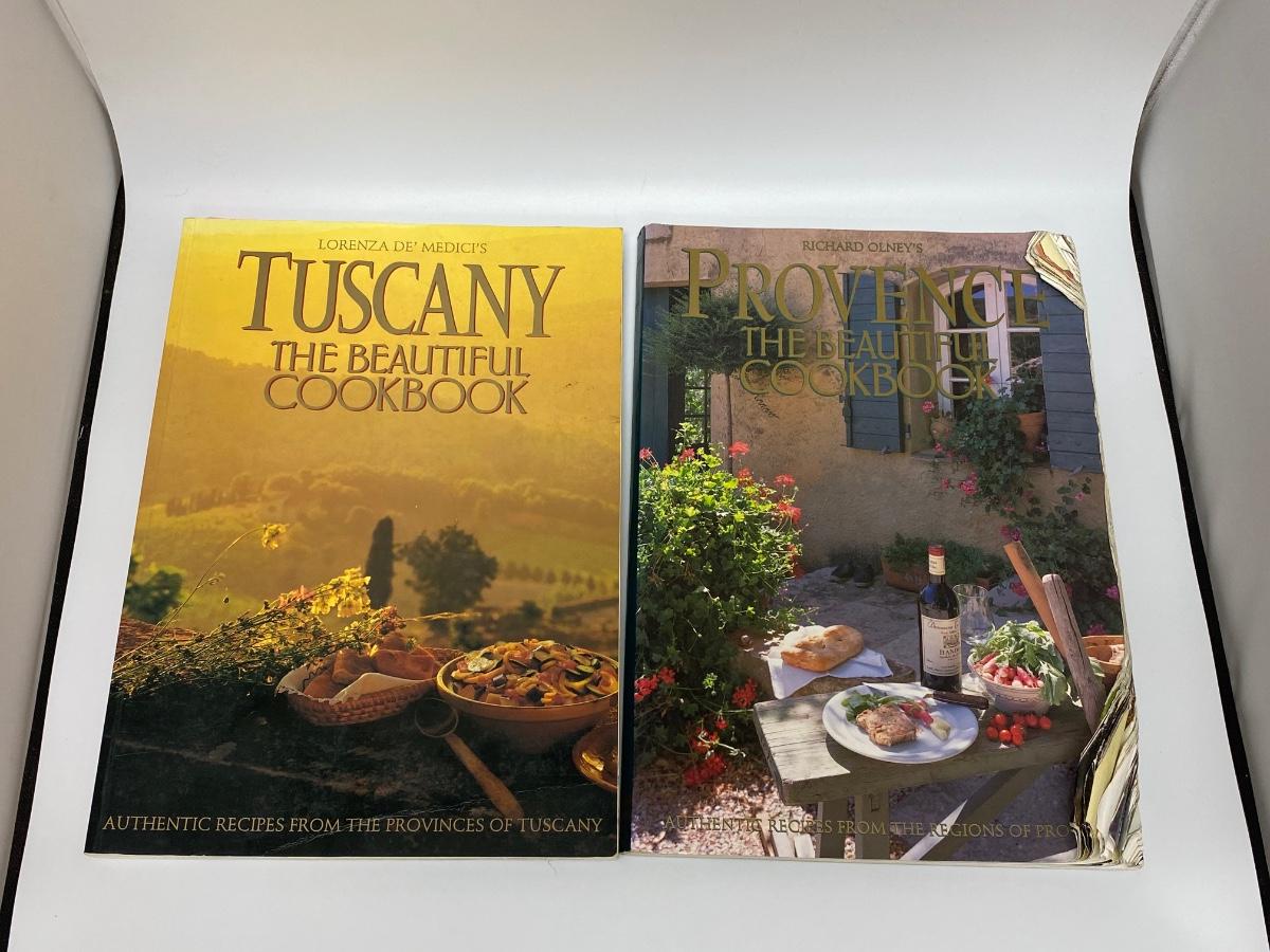 The Beautiful Cookbook, Tuscany & Provence. Large size, soft cover. The Provence cookbook has curled up page corners but is still useable.
