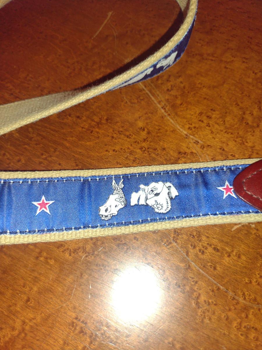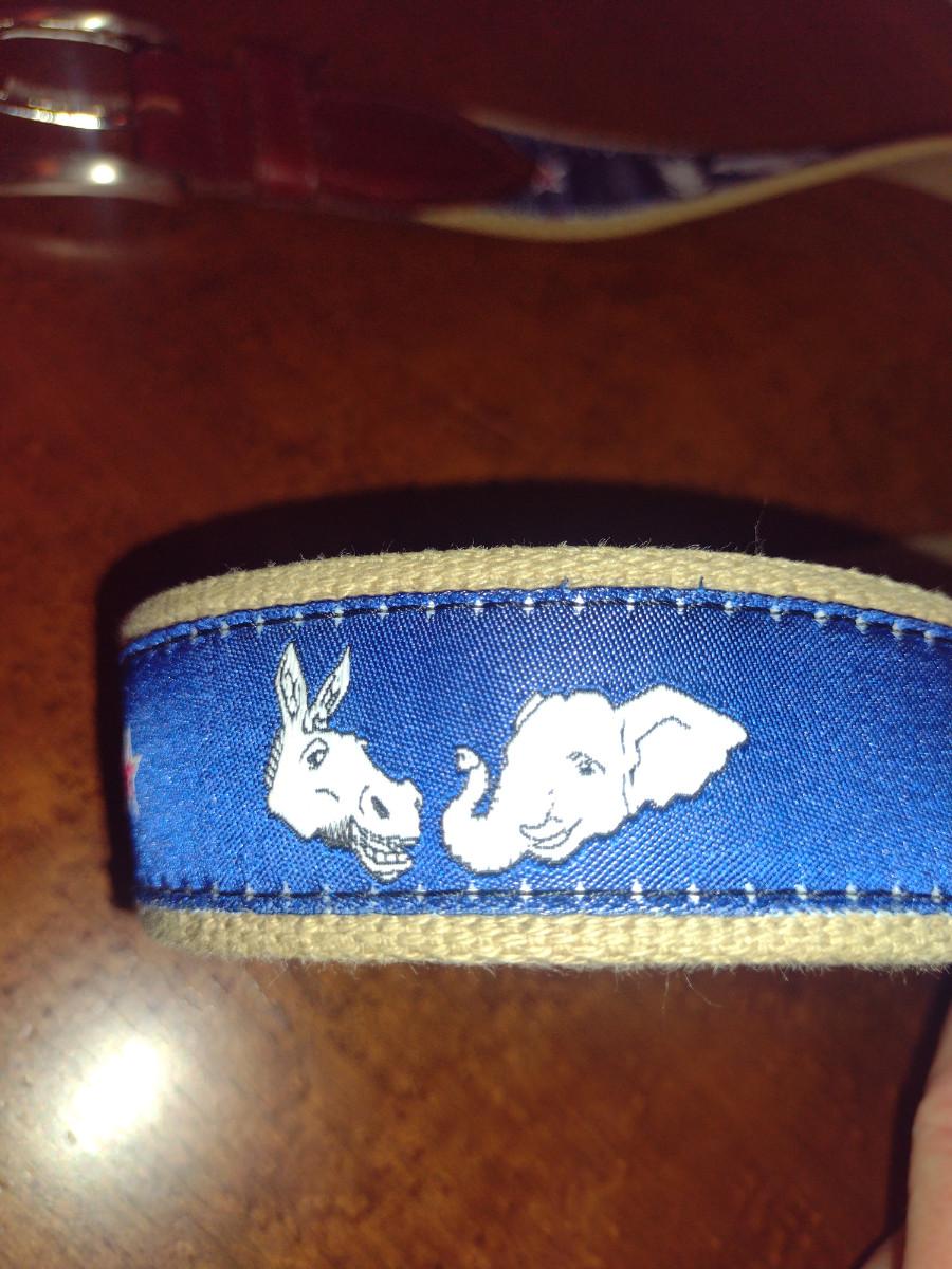 The Belted Cow Co. Democrat Donkey and Republican Elephant Belt- Size 36. Made in Maine. Item is in used, but good condition.