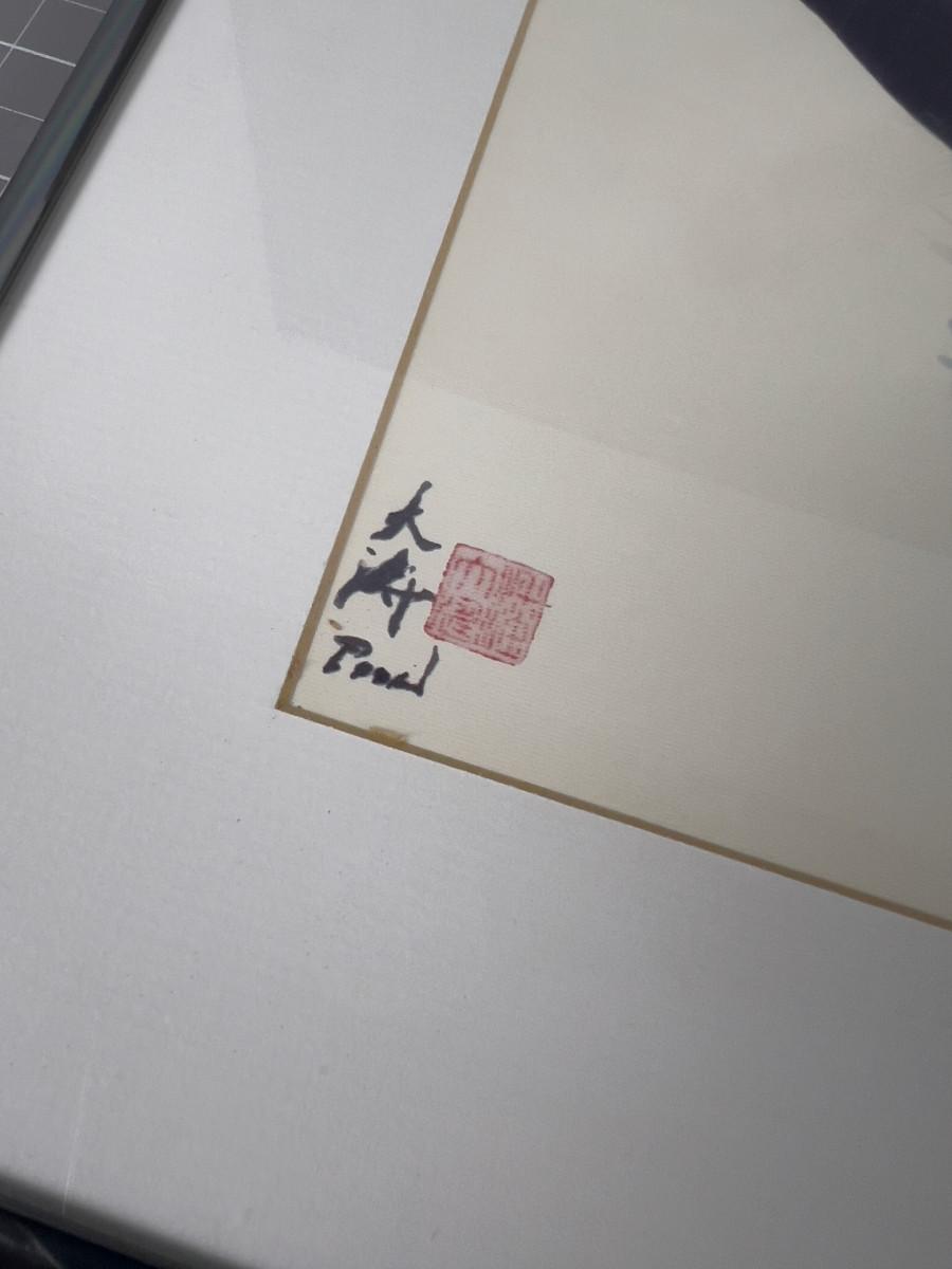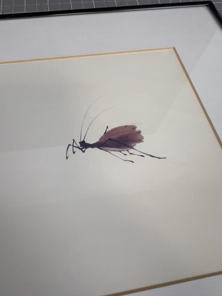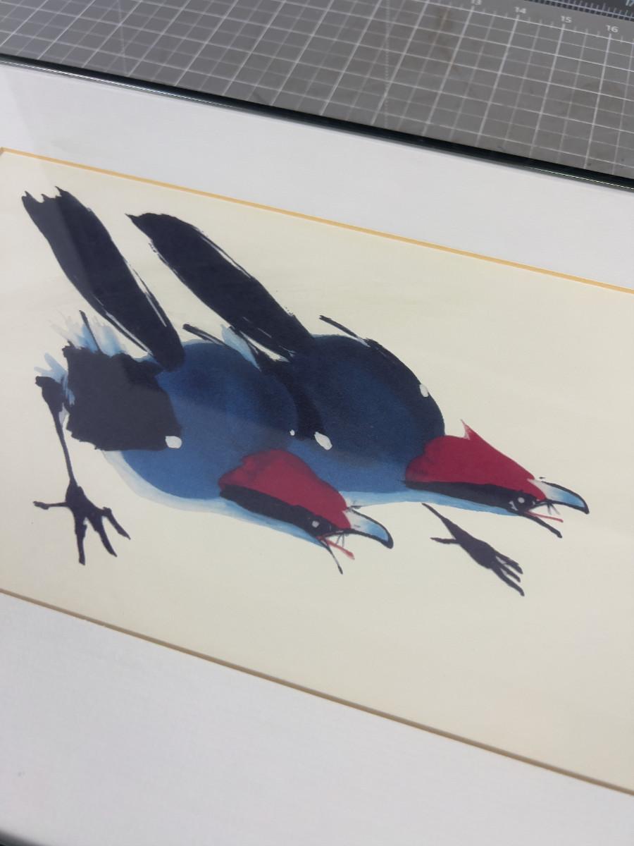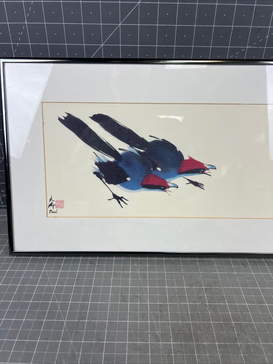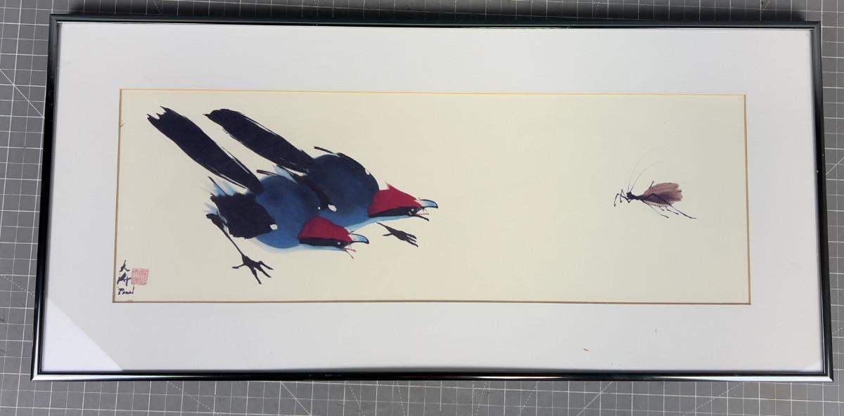 The Blue Bird with Red Head Stocking the CRICKET Framed and Matted Original Watercolor by Pearl