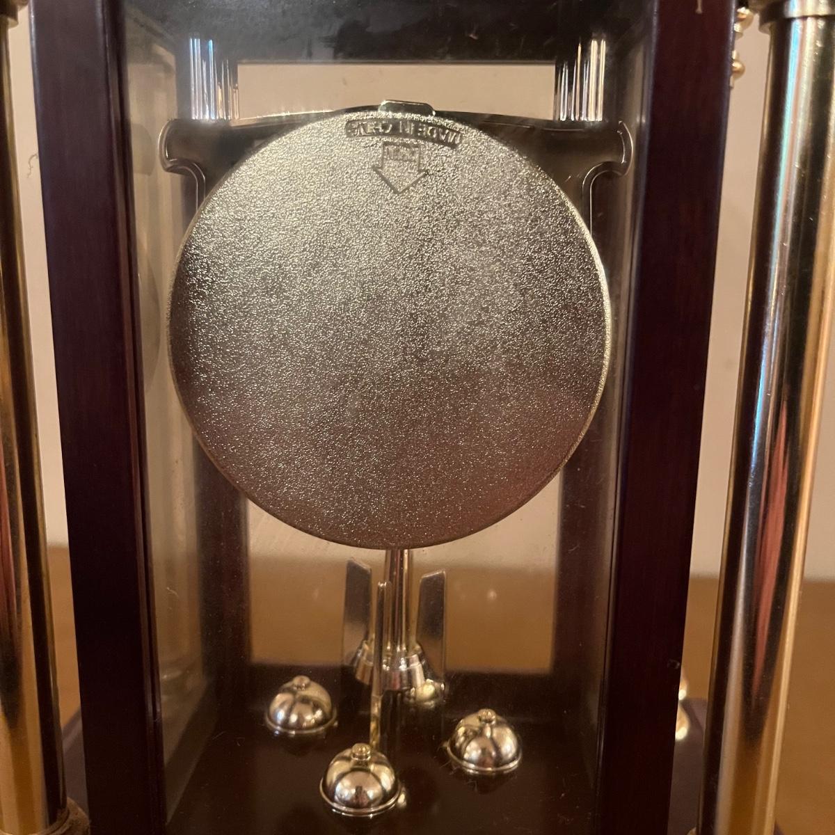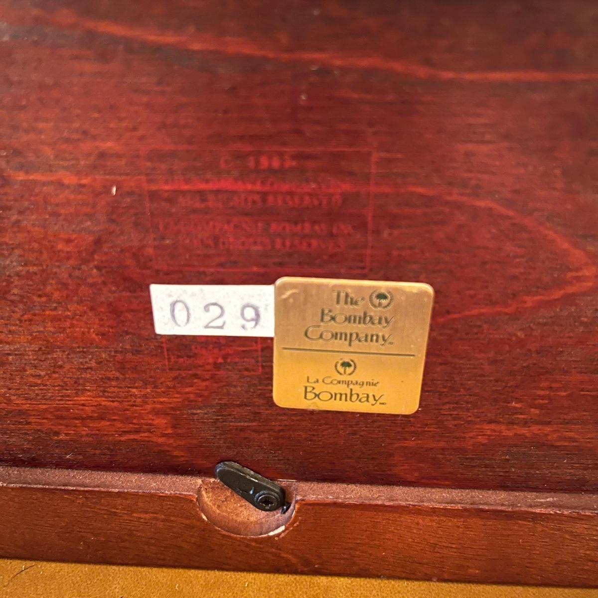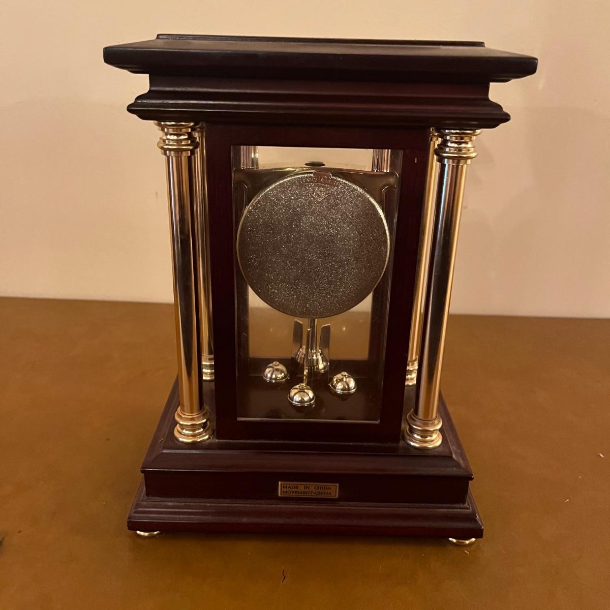 Lot includes a wooden clock by The Bombay Company that measures 5” x 7” x 9.5”. Clock needs battery so was not tested.
