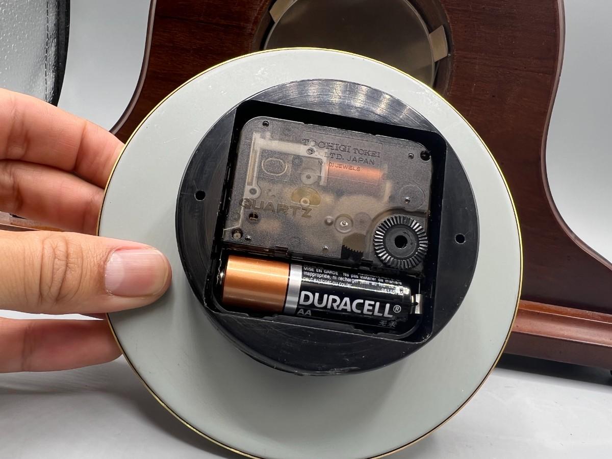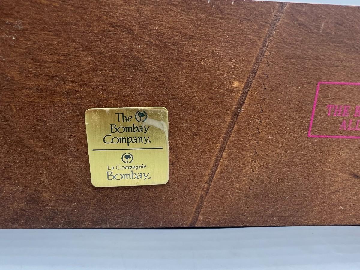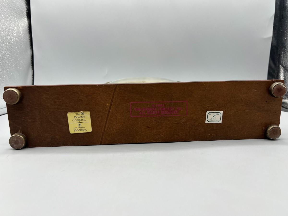 The Bombay Company Wood Battery Operated Mantle Clock. Takes one AA battery. Untested but battery compartment looks good.