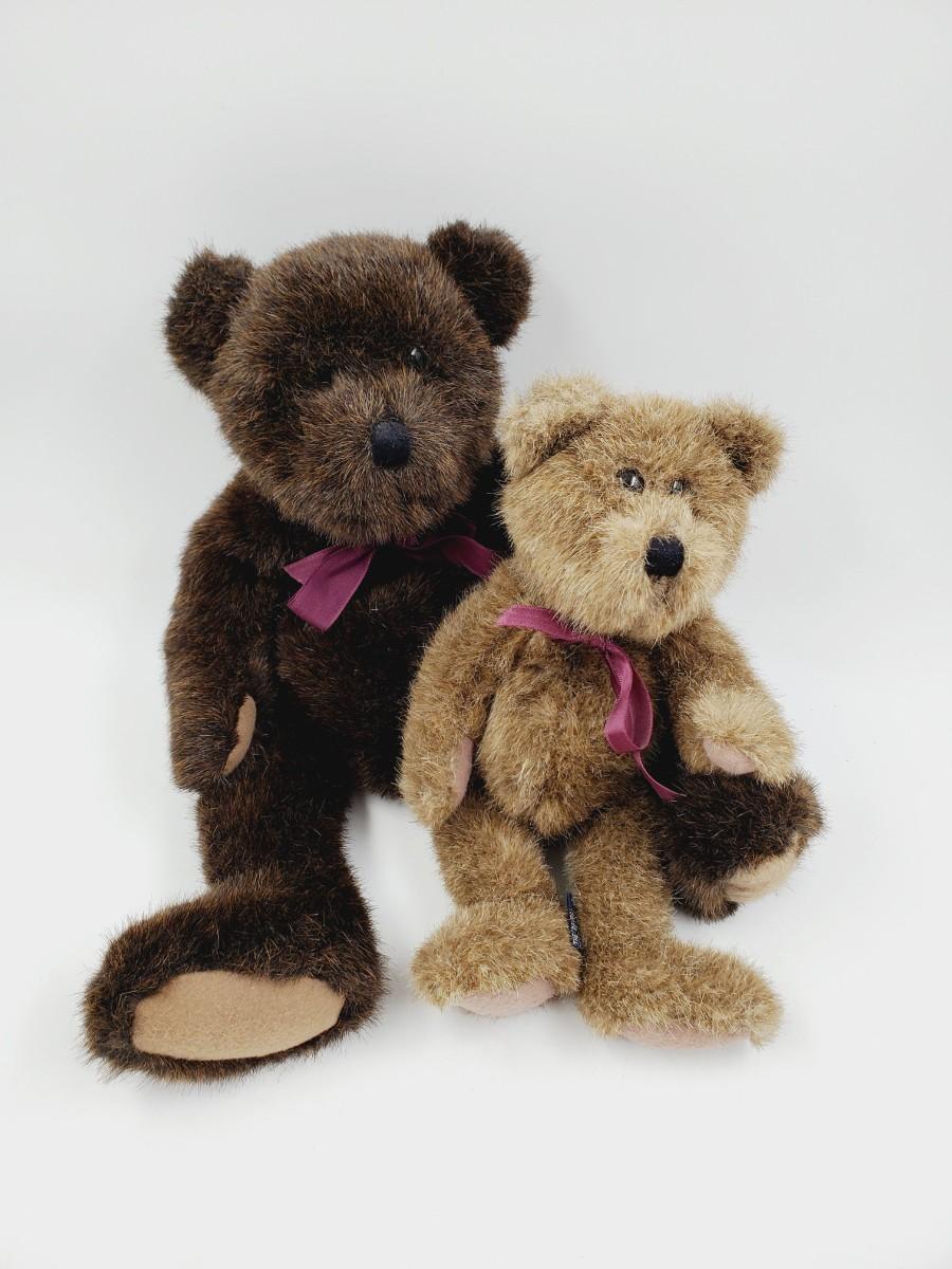 These adorable 10 and 15in cuddly Boyd's bears have jointed limbs making posing easy. Clean and in good condition!