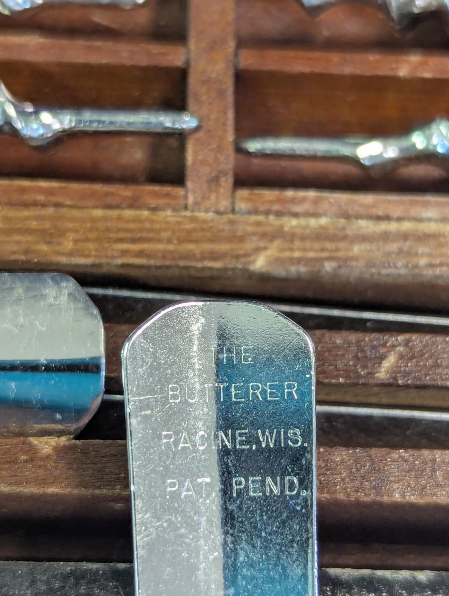 THE BUTTERER, Corn Cobb Buttering Spoons Set Of 4 Stainless Steel, The Original 1940s Era Stamped Racine WI Patent Pending