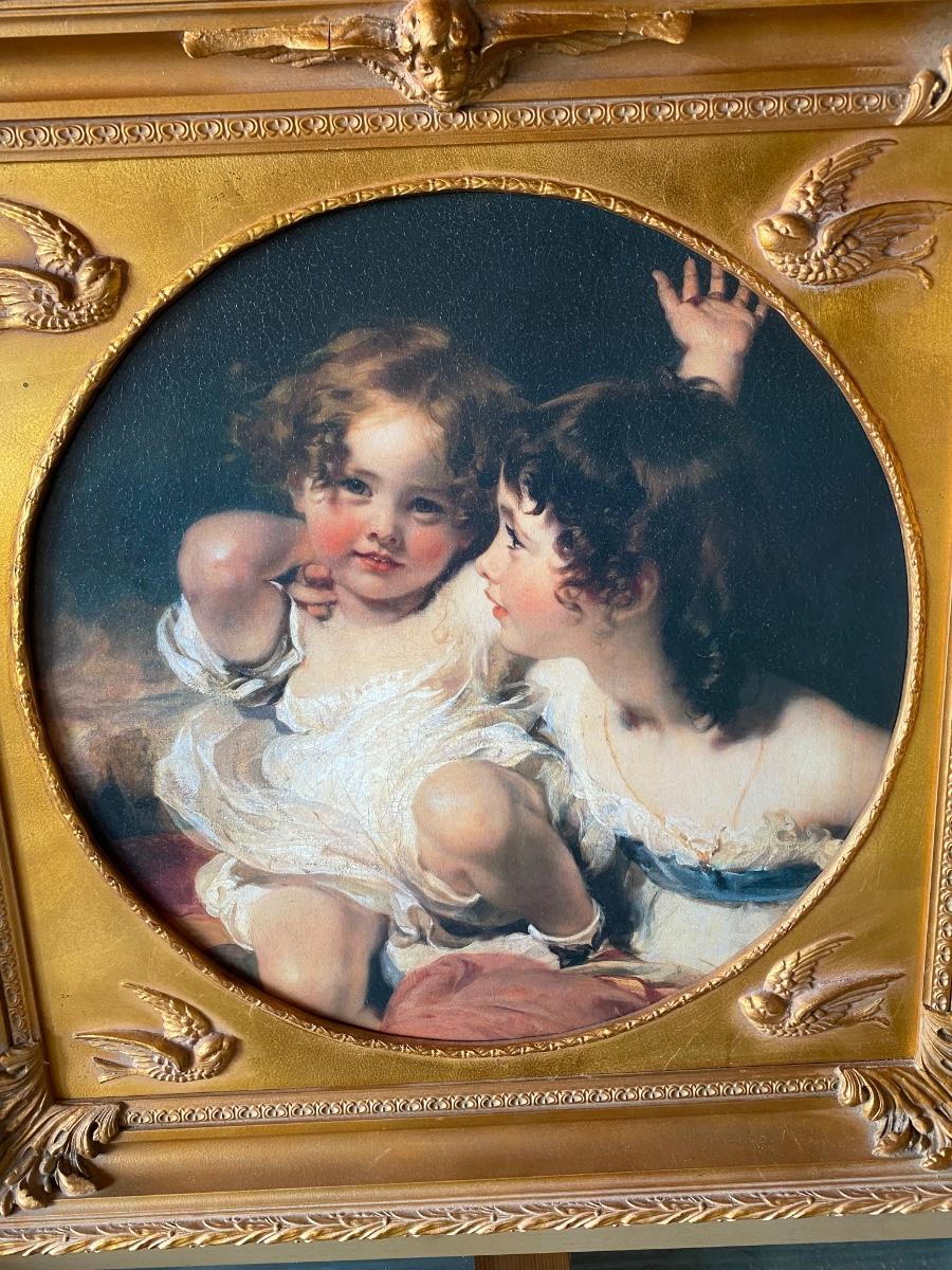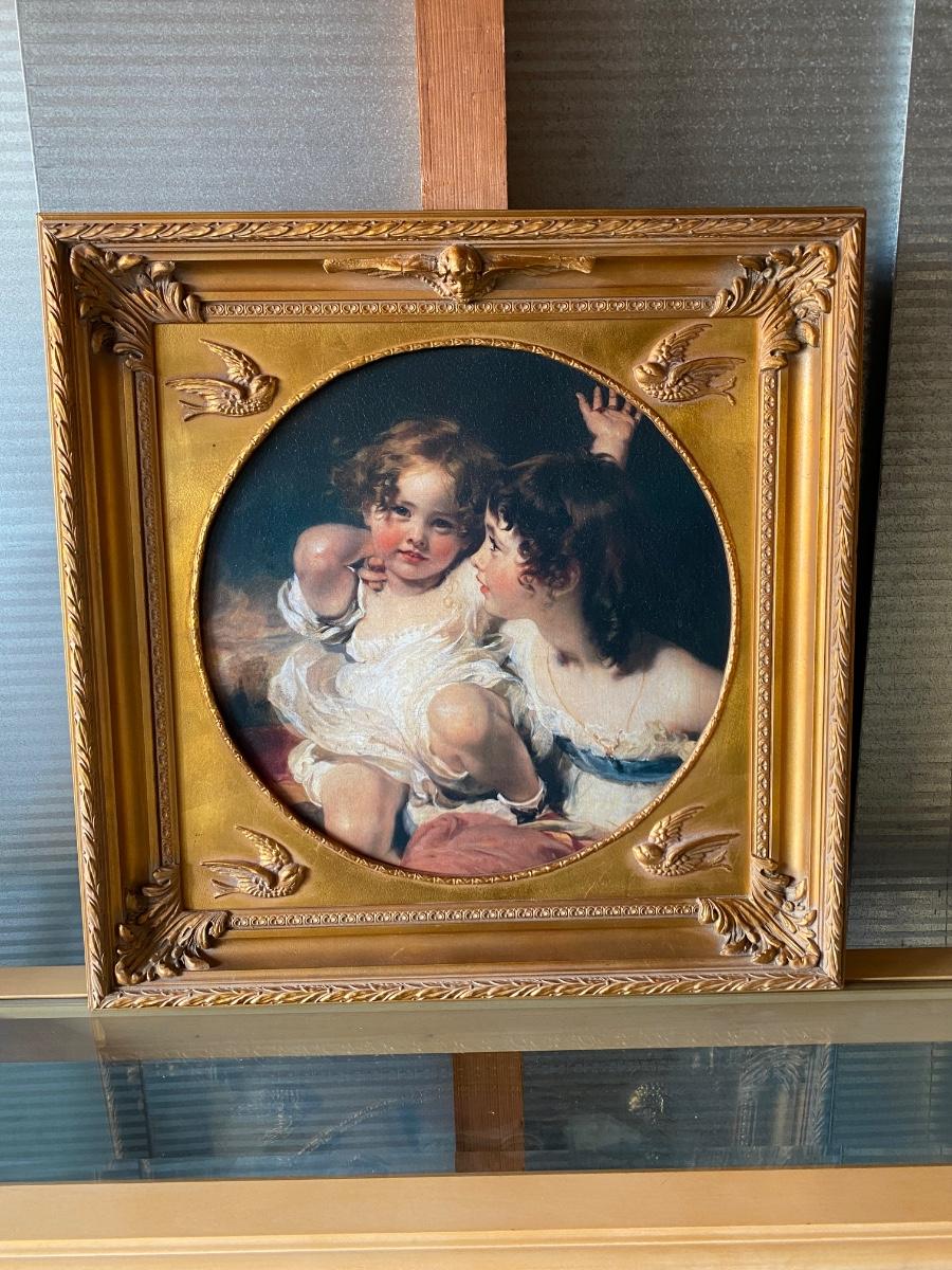 The Calmady Children by Sir Thomas Lawrence Hanging Art Print Litho Swallow & Cherub Frame. Beautiful frame. About 33" square. In good condition.