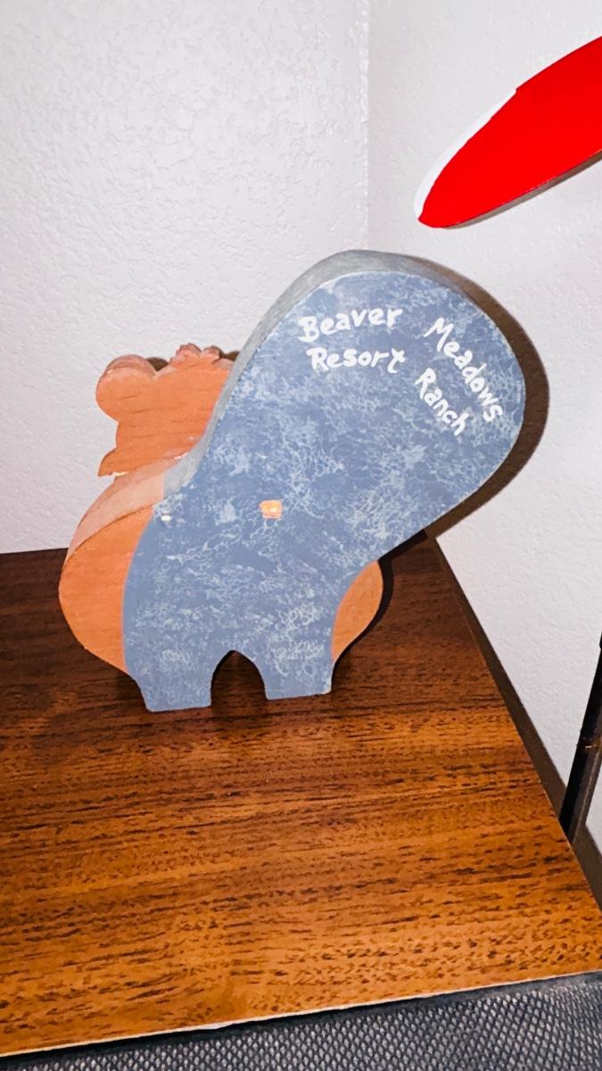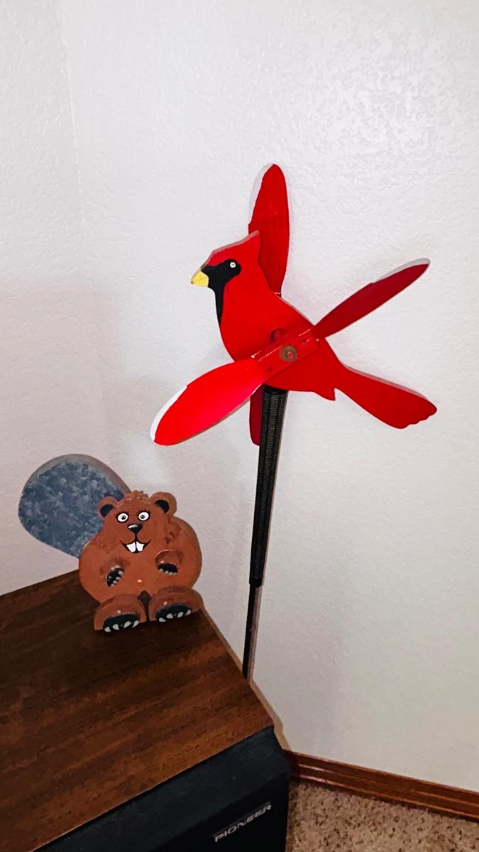 THE CARDINAL STAKED YARD ART AND A WOODEN BEAVER