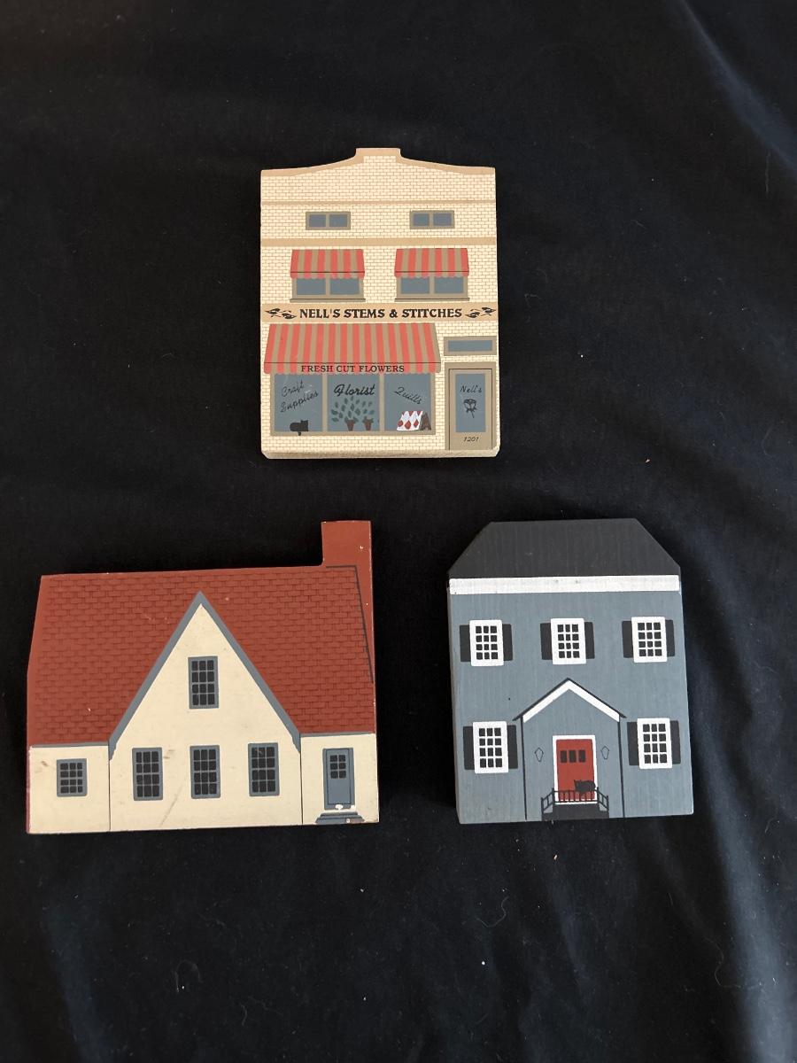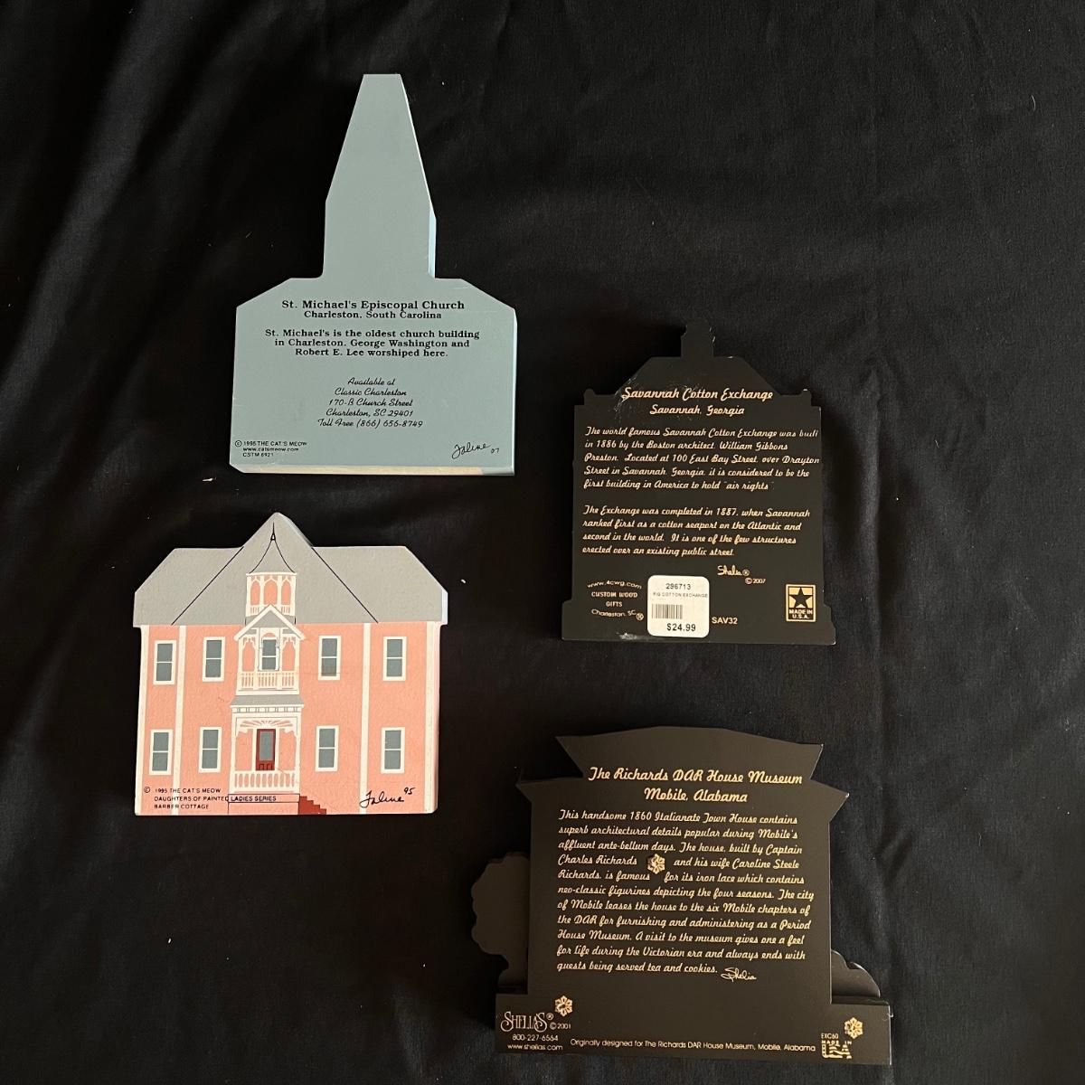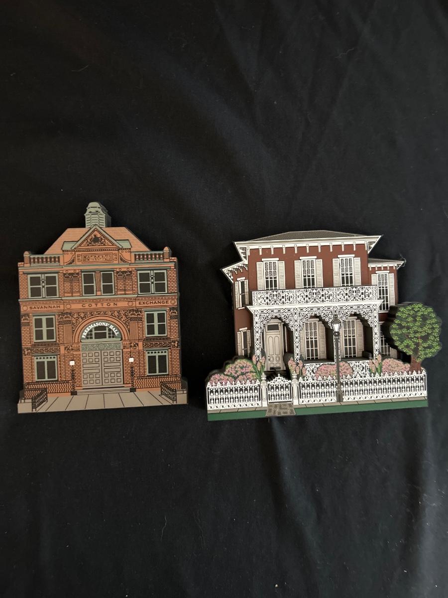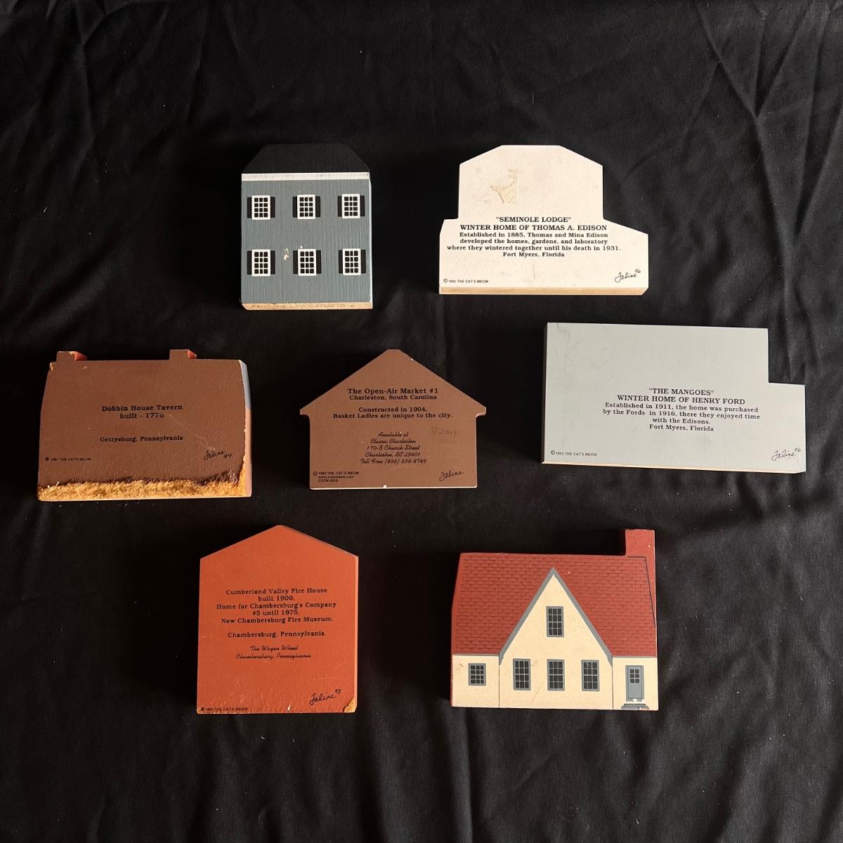 This lot contains 15 pieces with 10 being from “The Cat’s Meow” village series by Jaline. Each piece has a unique painting of buildings from different southern states. Largest piece measures 7.5”x 7”H. A few blemishes on back bottoms where moisture maybe got to them. See other lots for more Jaline village collections. Shipping available.