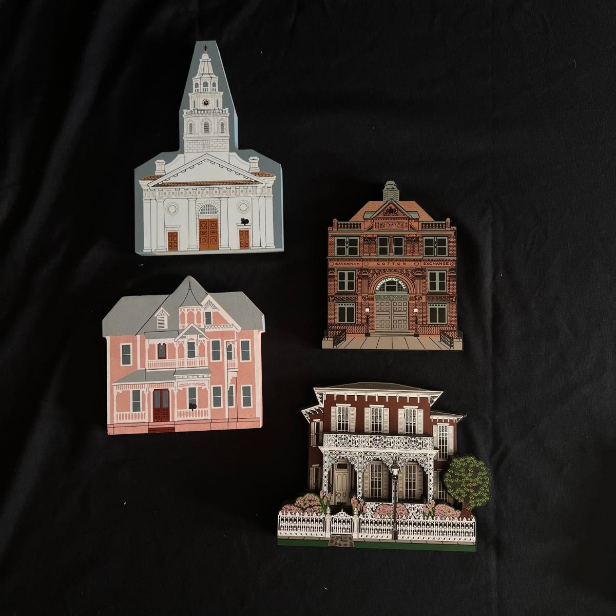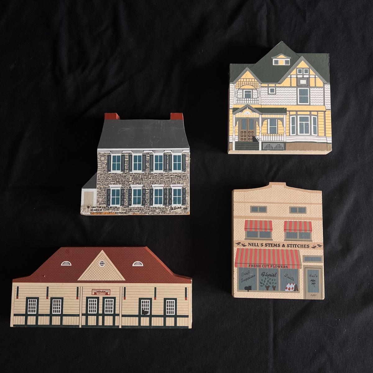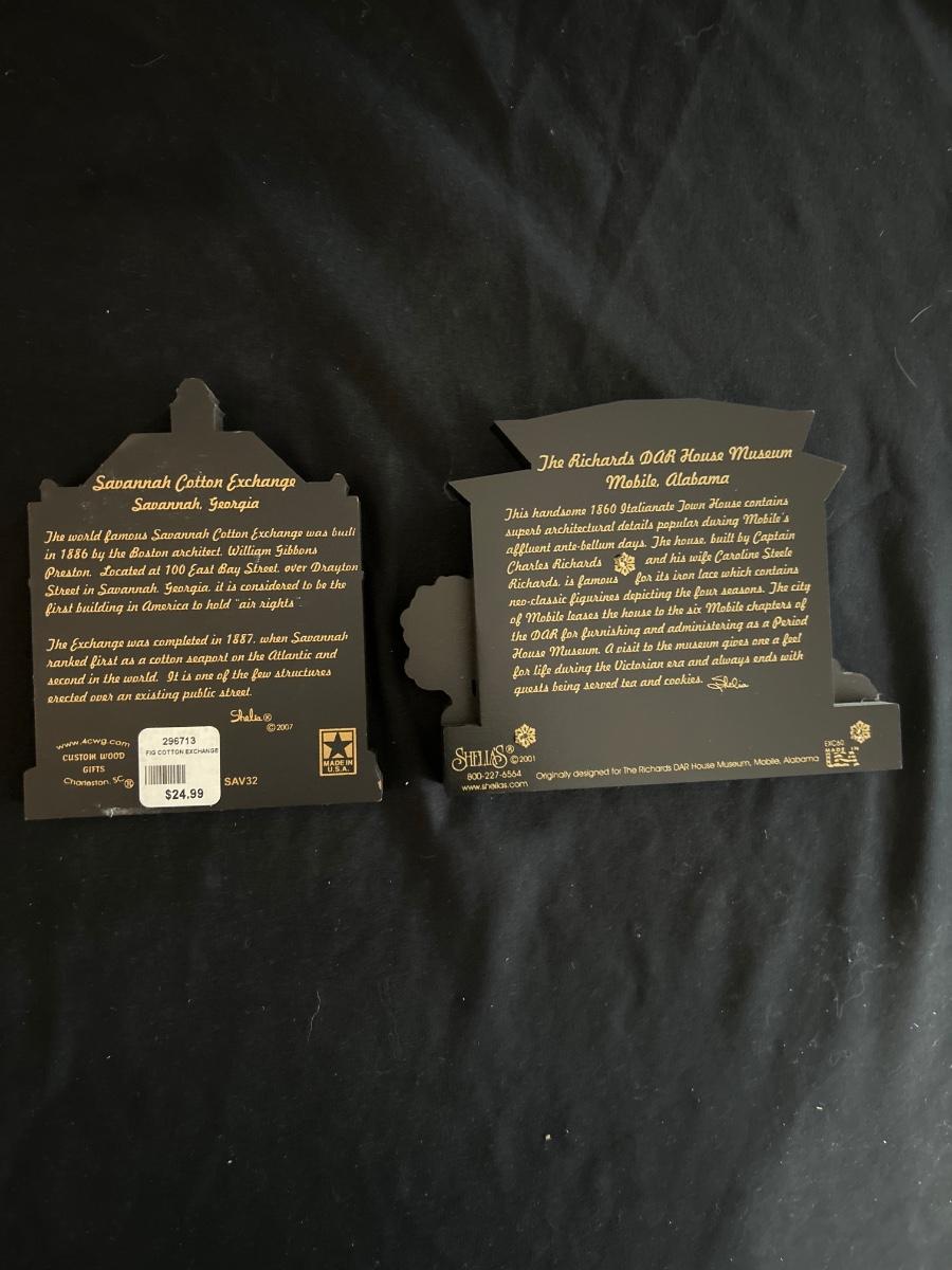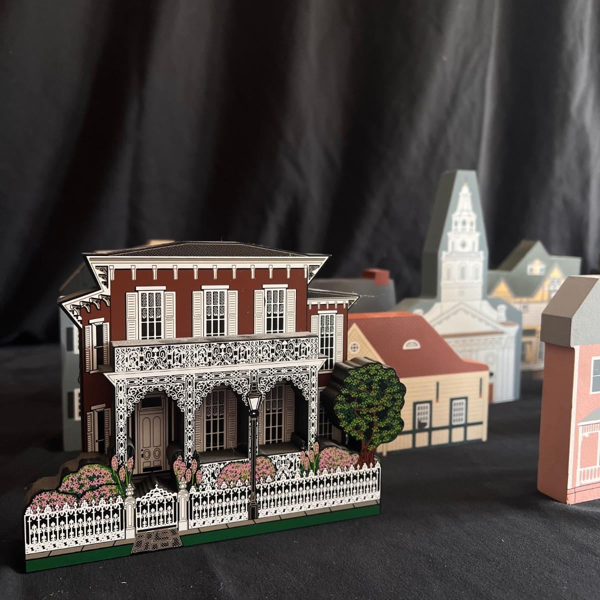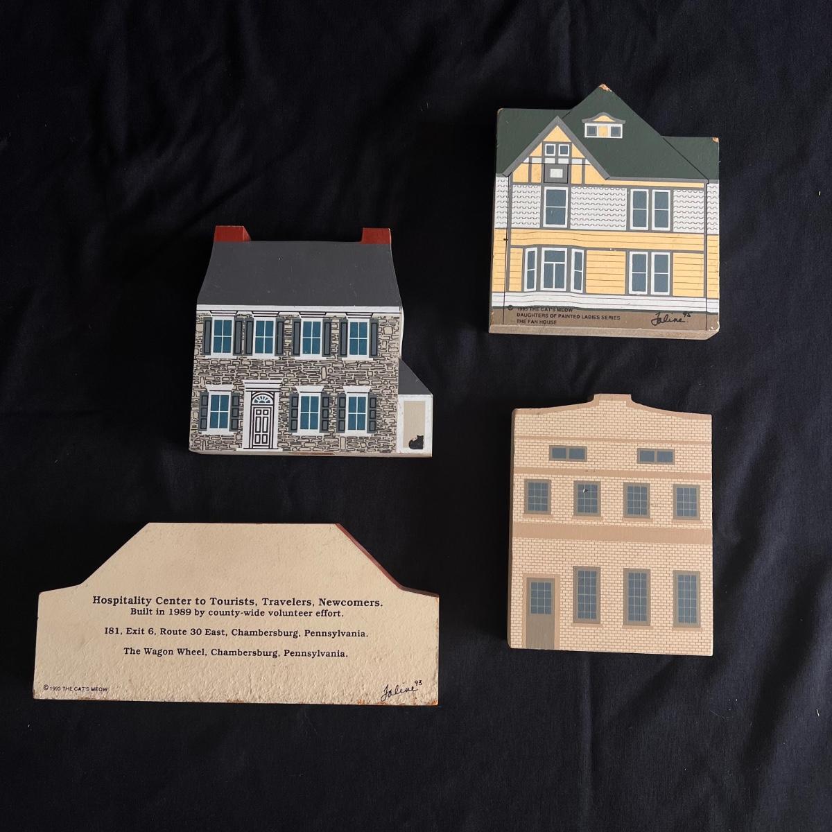 This lot contains 15 pieces with 10 being from “The Cat’s Meow” village series by Jaline. Each piece has a unique painting of buildings from different southern states. Largest piece measures 7.5”x 7”H. A few blemishes on back bottoms where moisture maybe got to them. See other lots for more Jaline village collections. Shipping available.