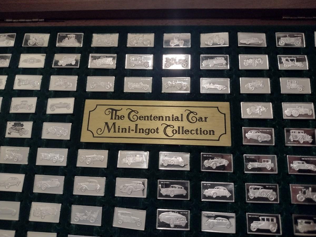 The Centennial Car Mini Ingot Collection. Has one ingot missing as shown. Do not know which car model.
