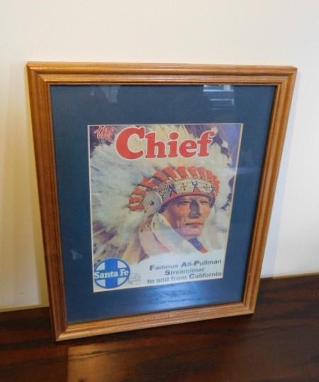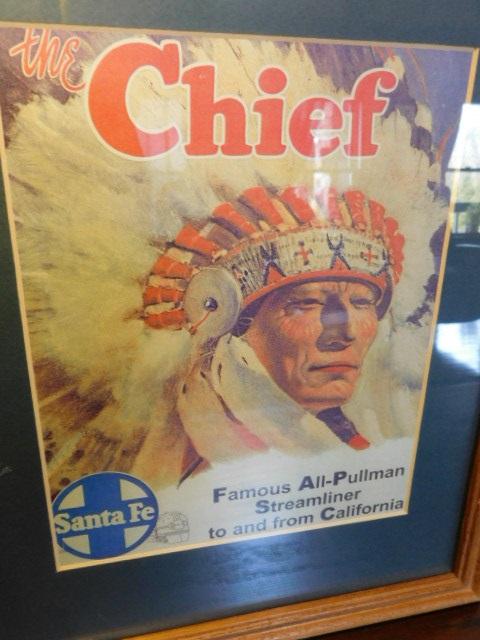 'The Chief' Santa Fe Famous All-Pullman Streamliner Advertisement Sign Framed 12"x16"