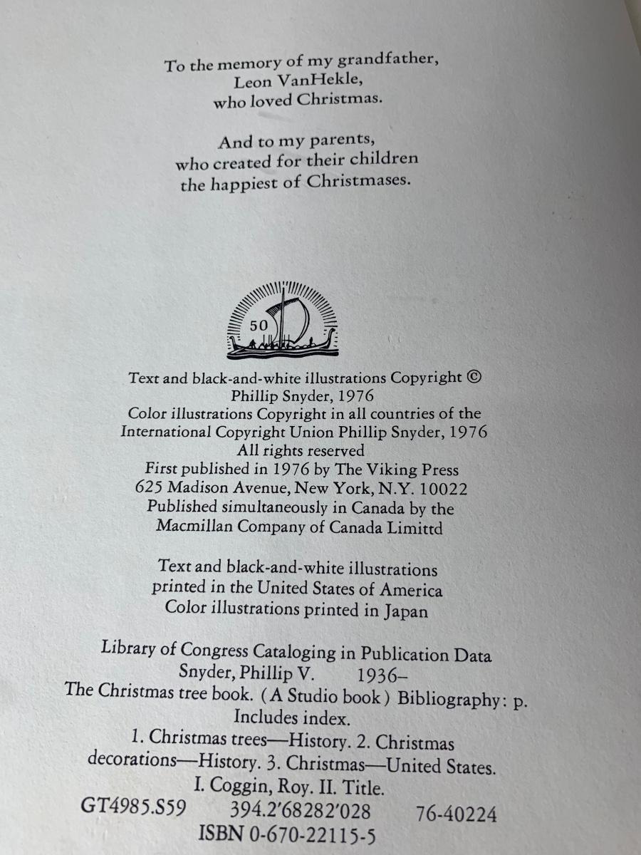 The Christmas Tree Book : A History by Phillip V. Snyder 1976 Hardcover