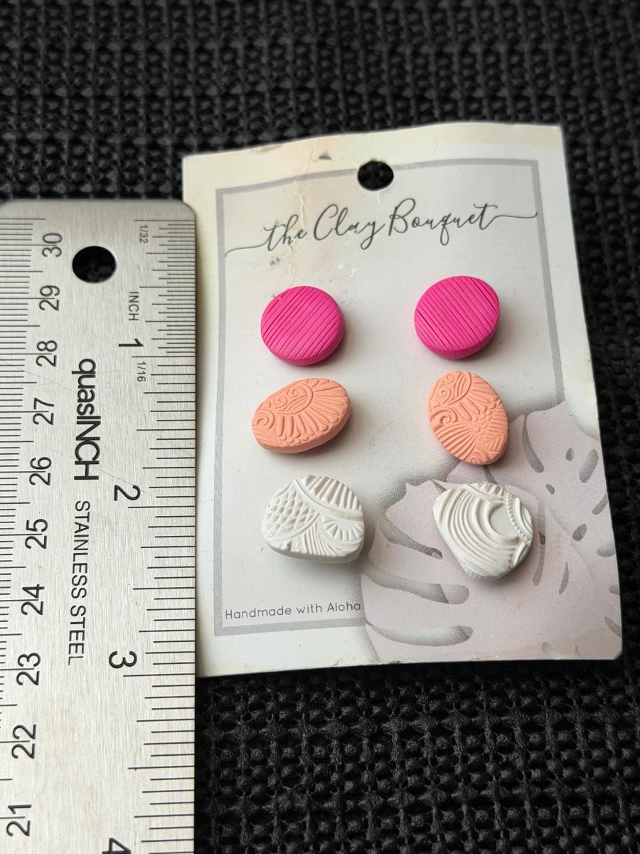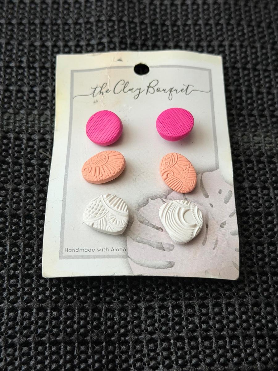 "The Clay Banquet" polymer clay stud earrings, handmade with aloha.