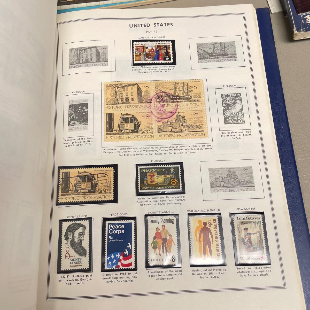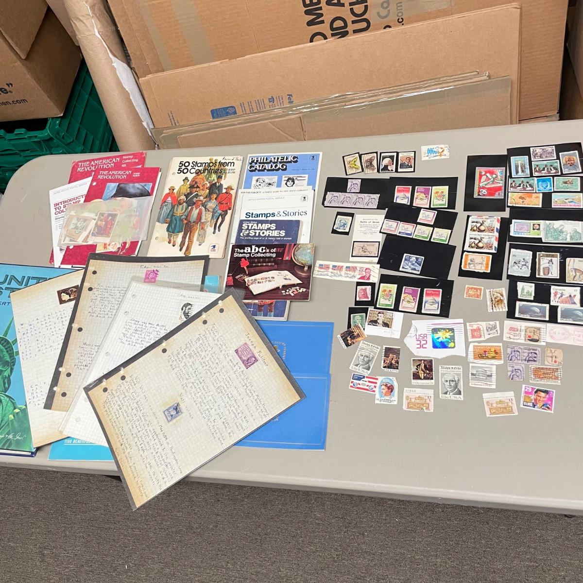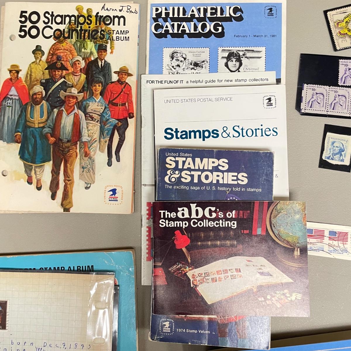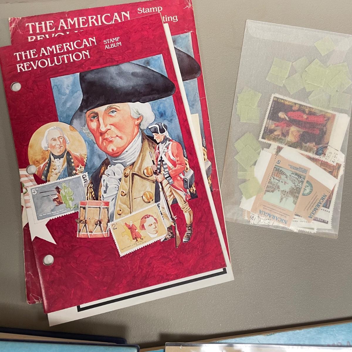 A big selection of mostly United States canceled and circulated stamps. Two albums, the larger album with the Statue of Liberty has more stamps, the smaller album is mostly empty and ready to fill! The American Revolution booklet is also ready to be filled, it has a few stamps with it, we did not verify if all stamps are present. Lot also has reference guides and a foreign stamp booklet and stamps. See images for lot inventory. All sales are final. No returns or refunds. Please bid accordingly. Shipping available.