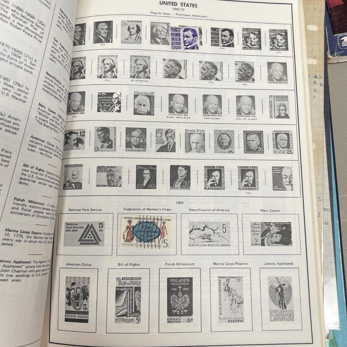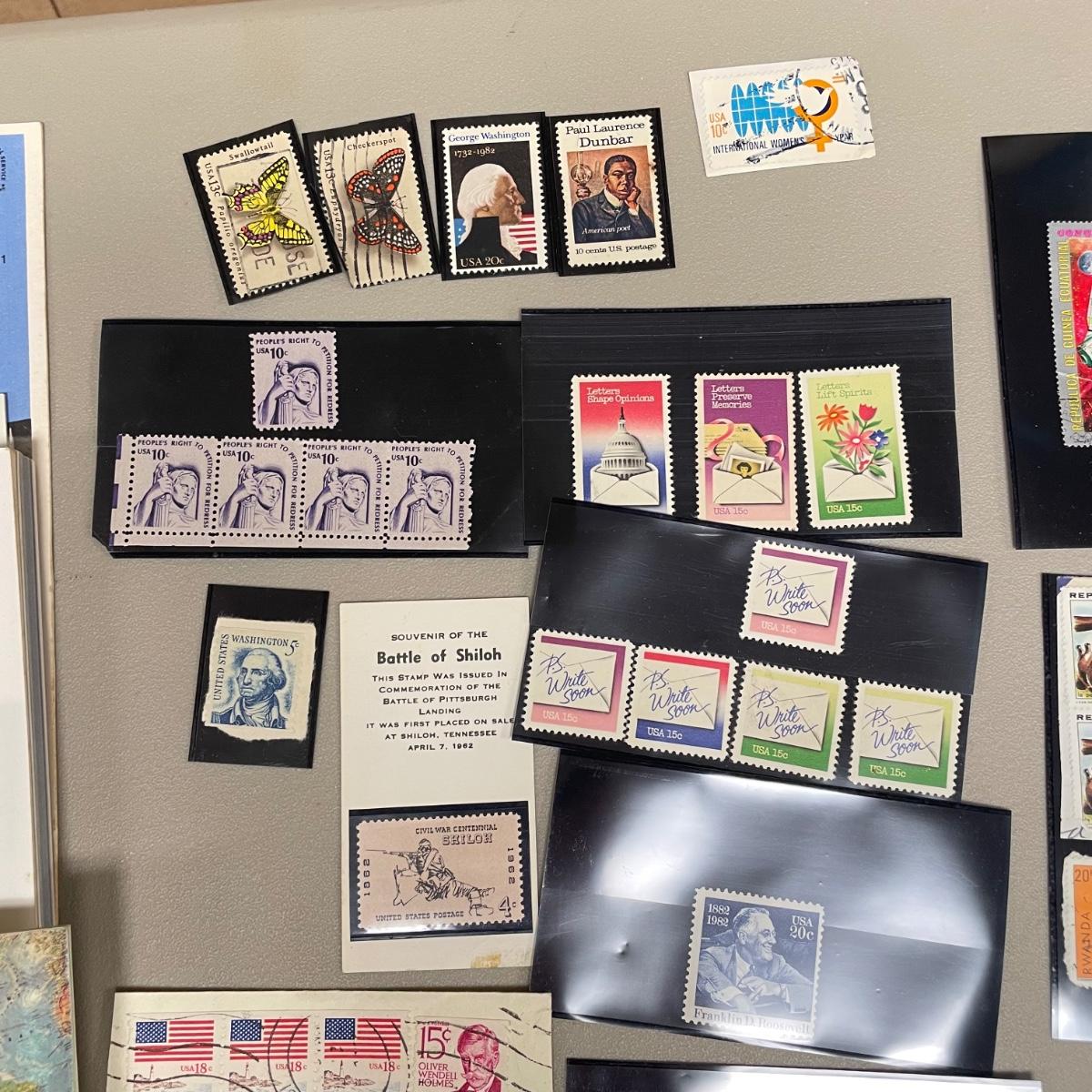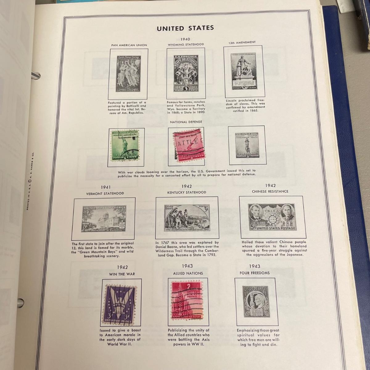 A big selection of mostly United States canceled and circulated stamps. Two albums, the larger album with the Statue of Liberty has more stamps, the smaller album is mostly empty and ready to fill! The American Revolution booklet is also ready to be filled, it has a few stamps with it, we did not verify if all stamps are present. Lot also has reference guides and a foreign stamp booklet and stamps. See images for lot inventory. All sales are final. No returns or refunds. Please bid accordingly. Shipping available.