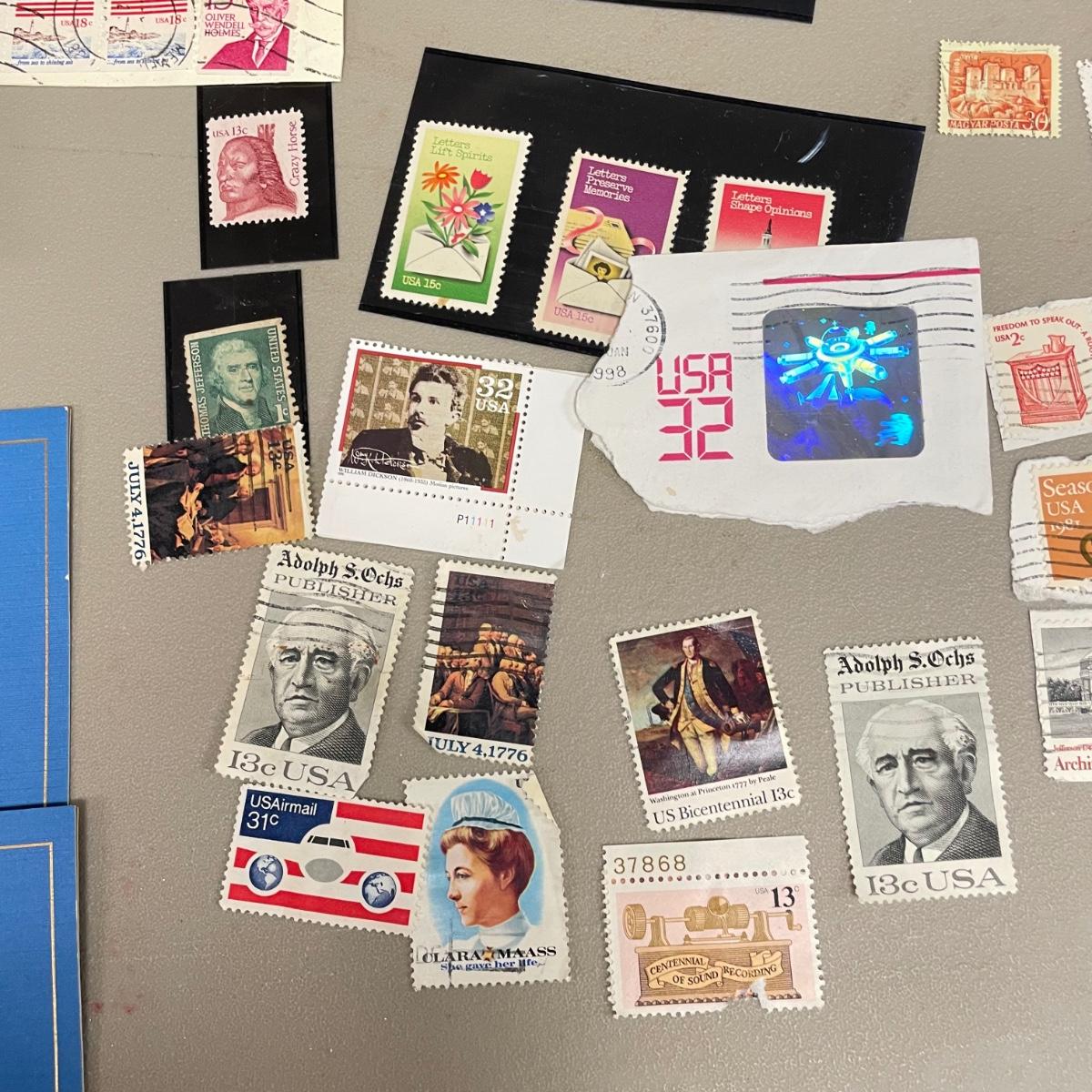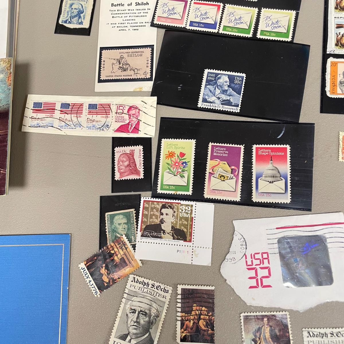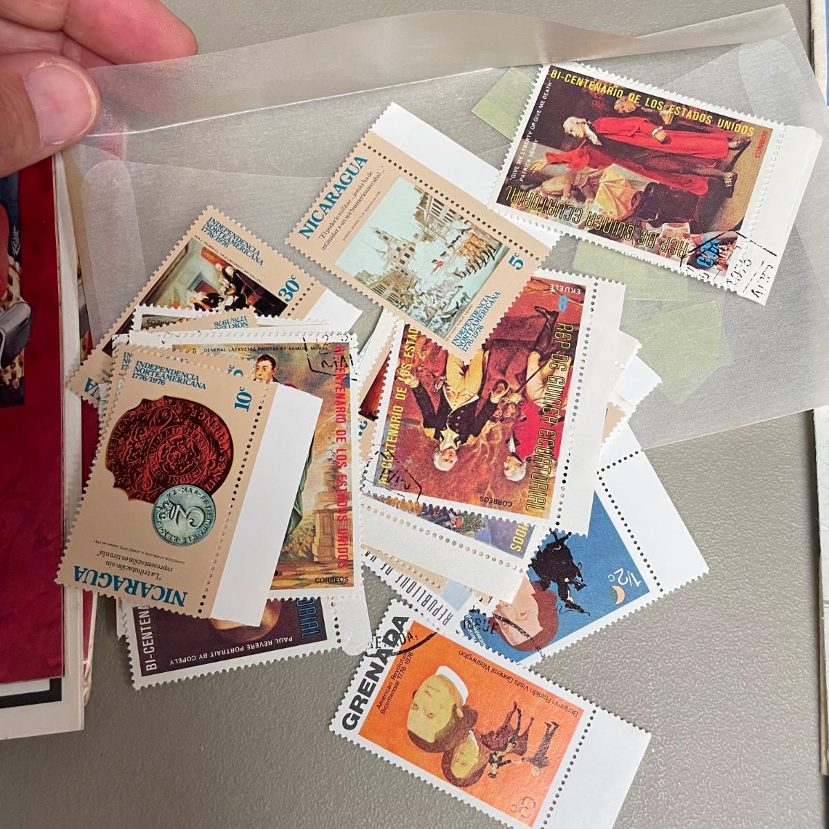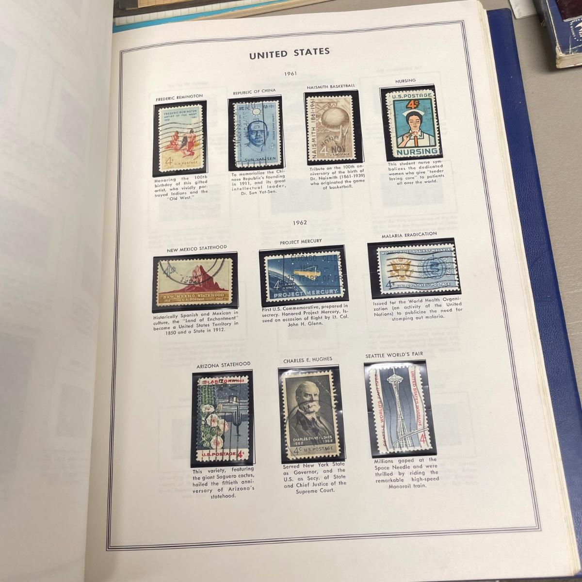 A big selection of mostly United States canceled and circulated stamps. Two albums, the larger album with the Statue of Liberty has more stamps, the smaller album is mostly empty and ready to fill! The American Revolution booklet is also ready to be filled, it has a few stamps with it, we did not verify if all stamps are present. Lot also has reference guides and a foreign stamp booklet and stamps. See images for lot inventory. All sales are final. No returns or refunds. Please bid accordingly. Shipping available.