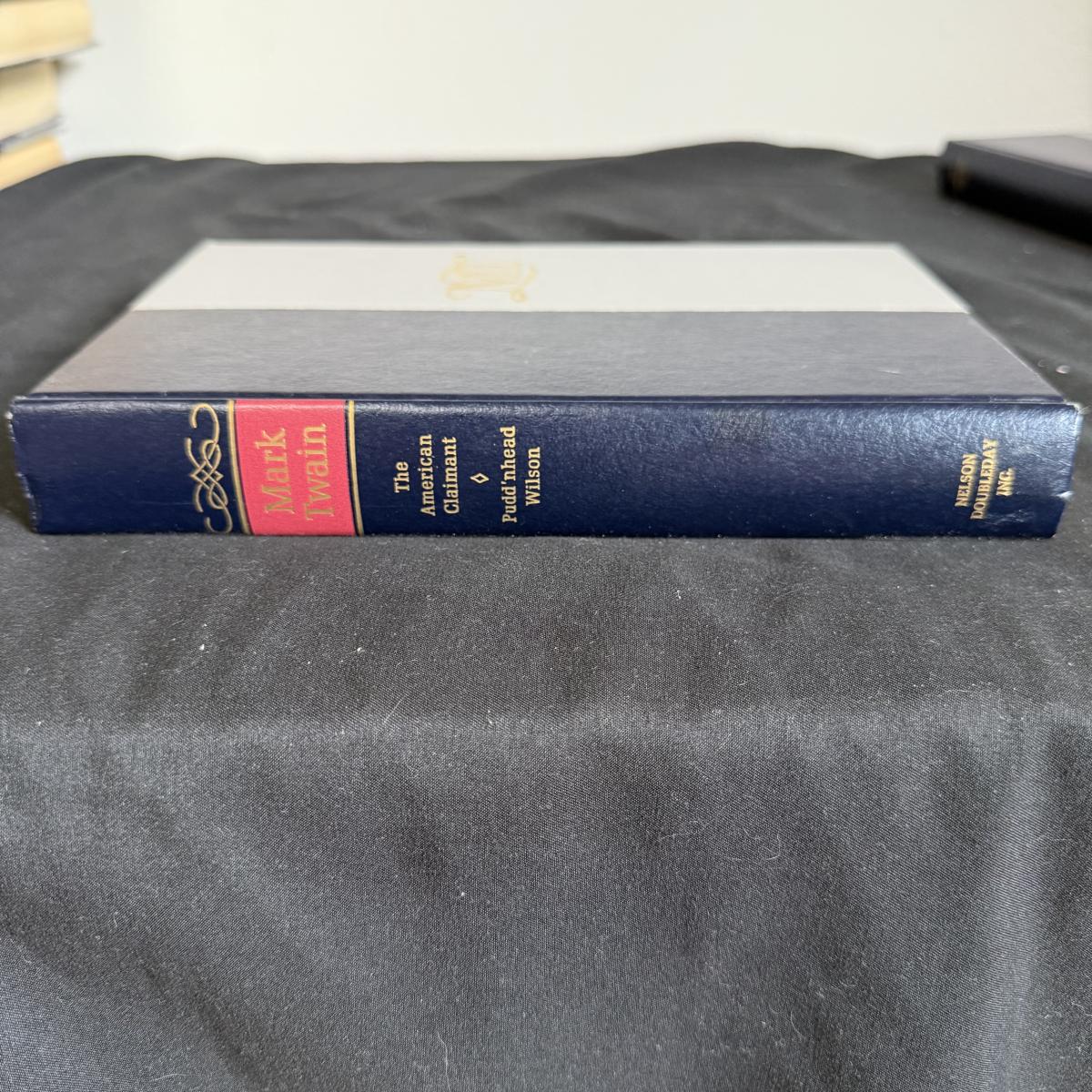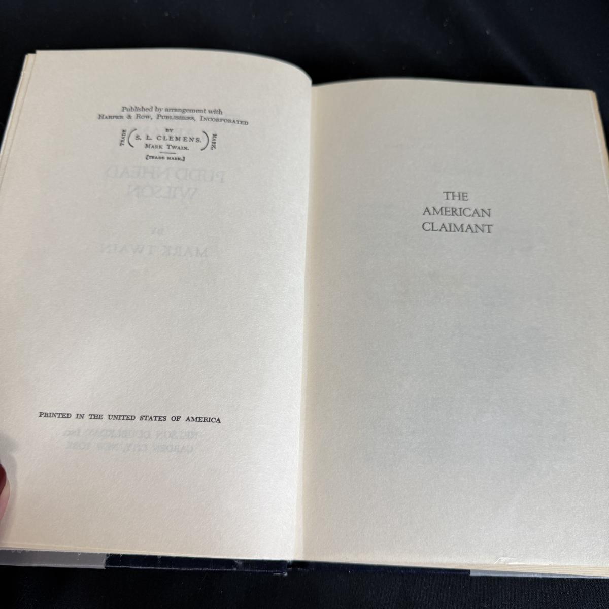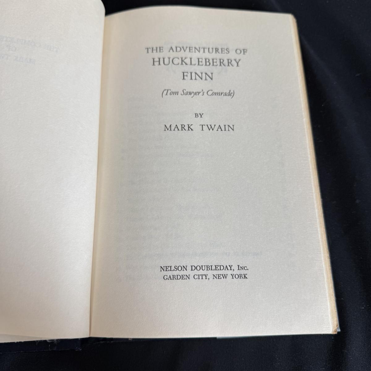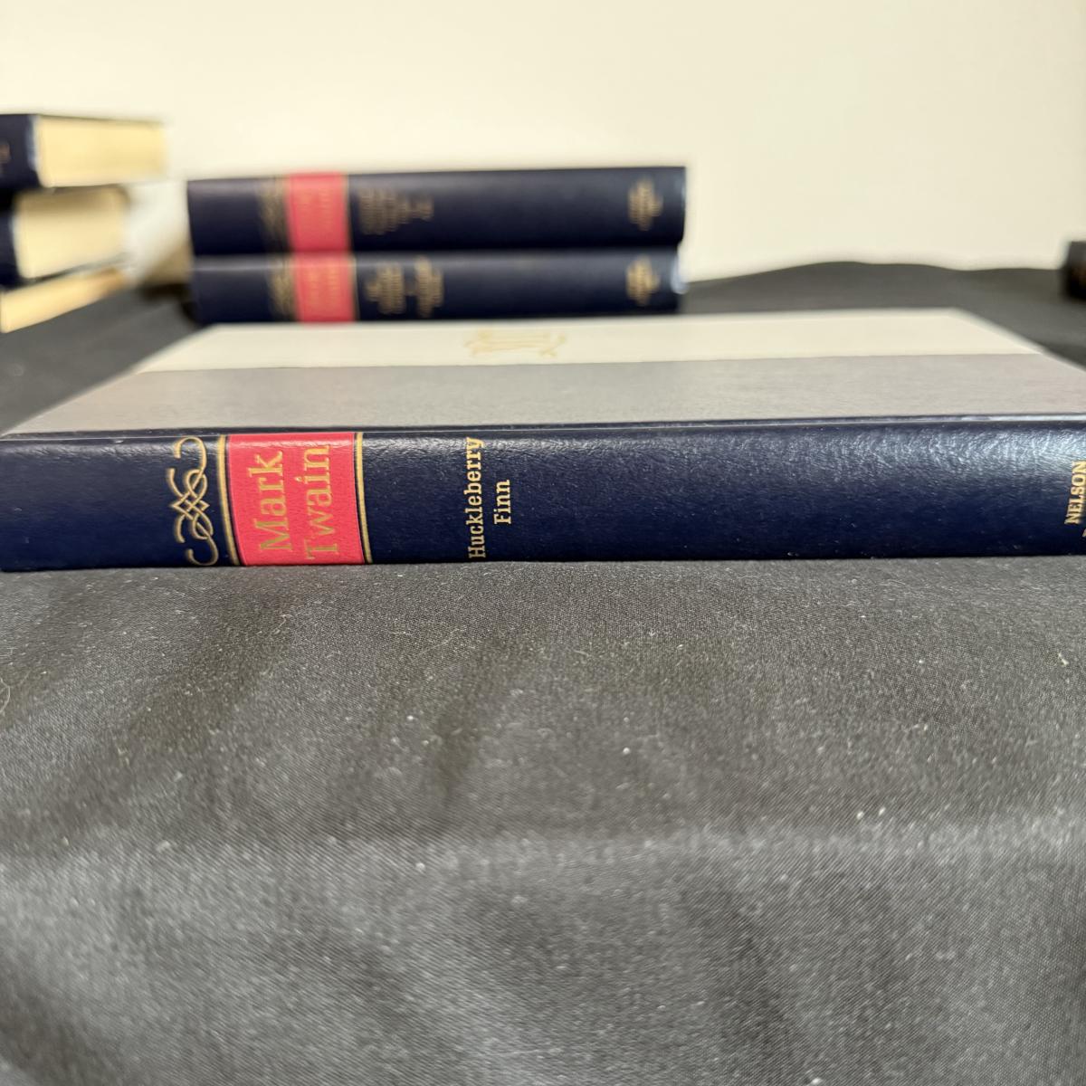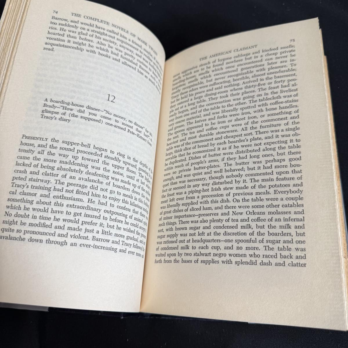 This lot contains ‘The Complete Novels of Mark Twain’ that is a total of seven books. All of the books match with the same covers. In this collection we have The American Claimant/ Pudd’nhead Wilson, The Personal Recollections of Joan of Arc, Huckleberry Finn, Tom Sawyer, A Connecticut Yankee in King Arthur’s Court, The Gilded Age, The Prince and the Pauper/Those Extra-ordinary Twins. There are some corners that are a bit scuffed, and in a strange twist A Connecticut Yankee has been printed backwards and upside down from its binding. Each book measures 5.75” x 8.5”. Shipping available.