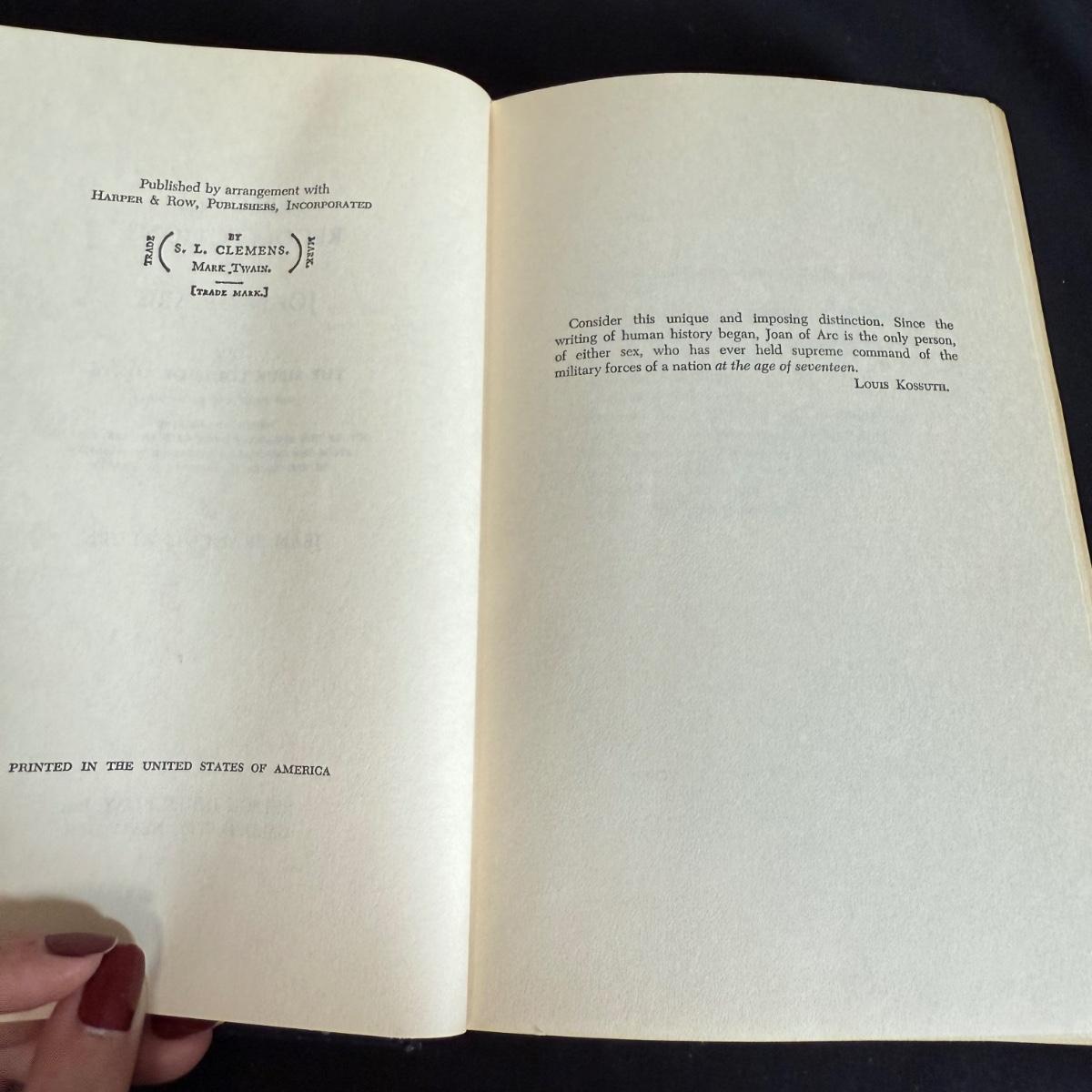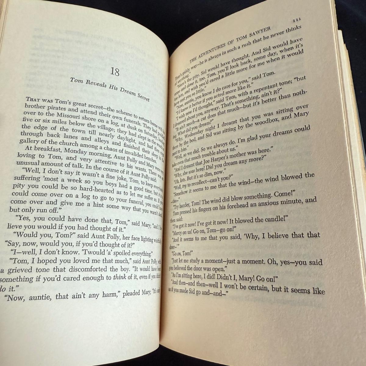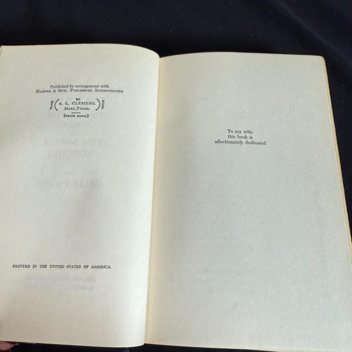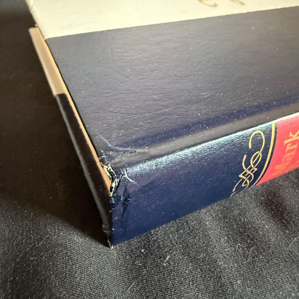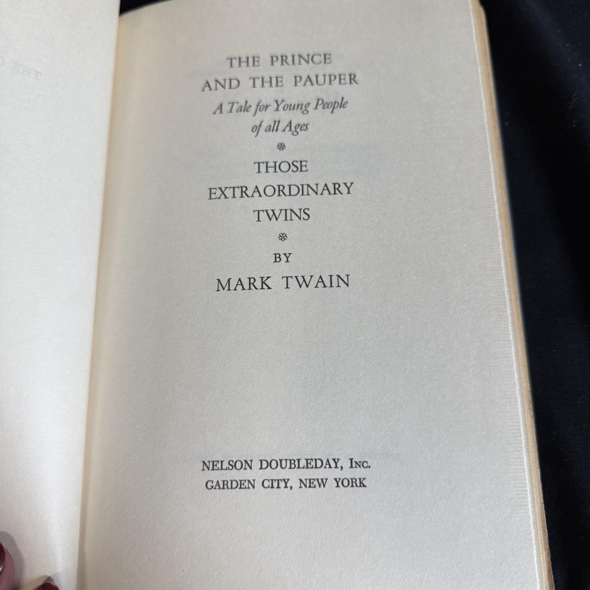 This lot contains ‘The Complete Novels of Mark Twain’ that is a total of seven books. All of the books match with the same covers. In this collection we have The American Claimant/ Pudd’nhead Wilson, The Personal Recollections of Joan of Arc, Huckleberry Finn, Tom Sawyer, A Connecticut Yankee in King Arthur’s Court, The Gilded Age, The Prince and the Pauper/Those Extra-ordinary Twins. There are some corners that are a bit scuffed, and in a strange twist A Connecticut Yankee has been printed backwards and upside down from its binding. Each book measures 5.75” x 8.5”. Shipping available.