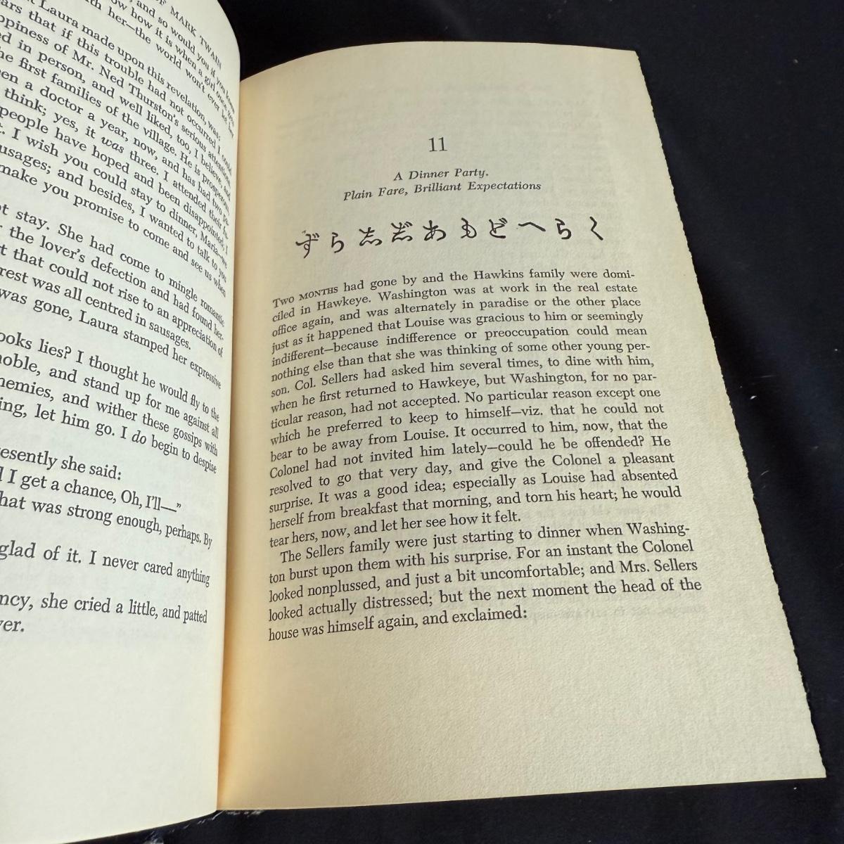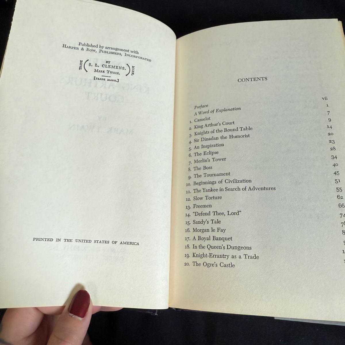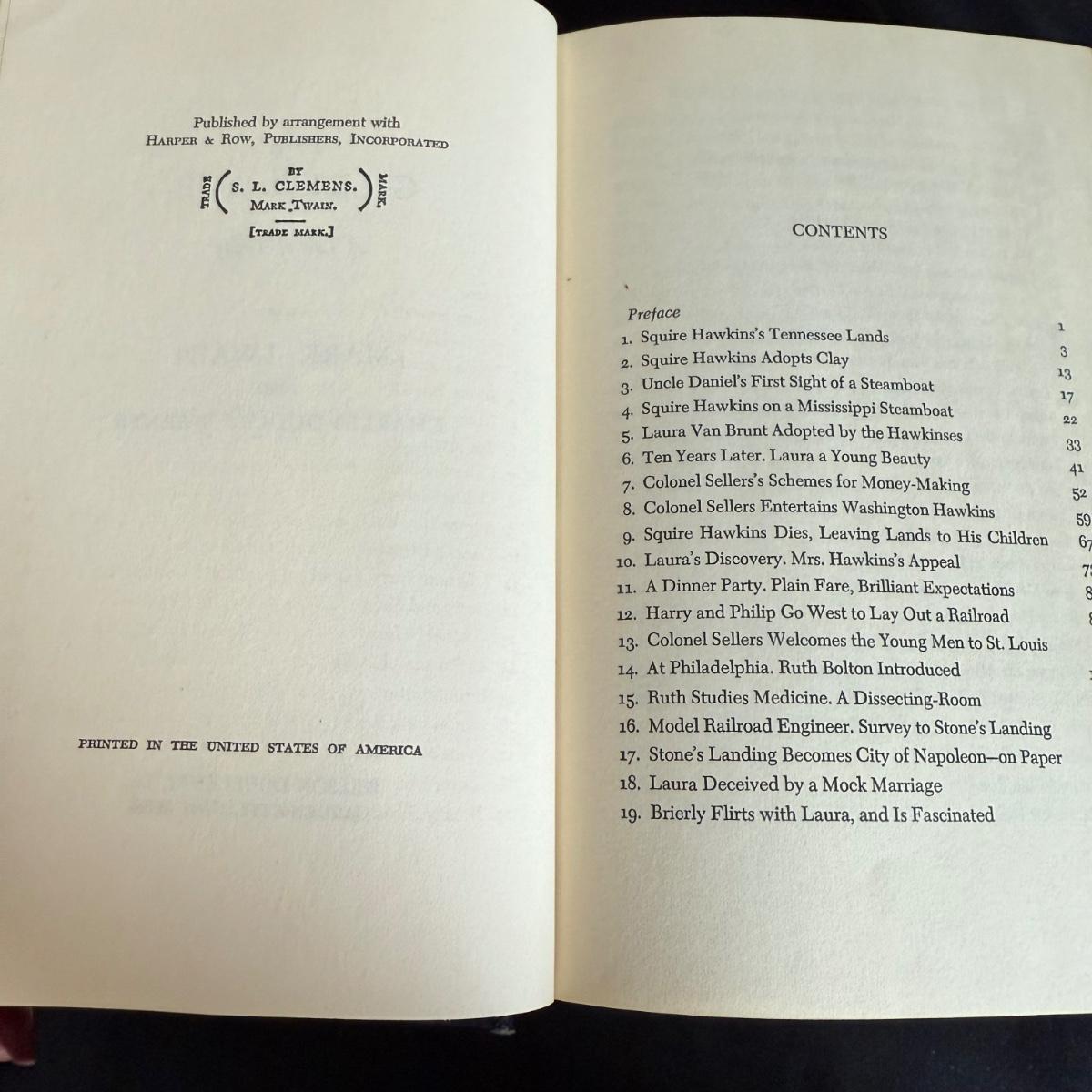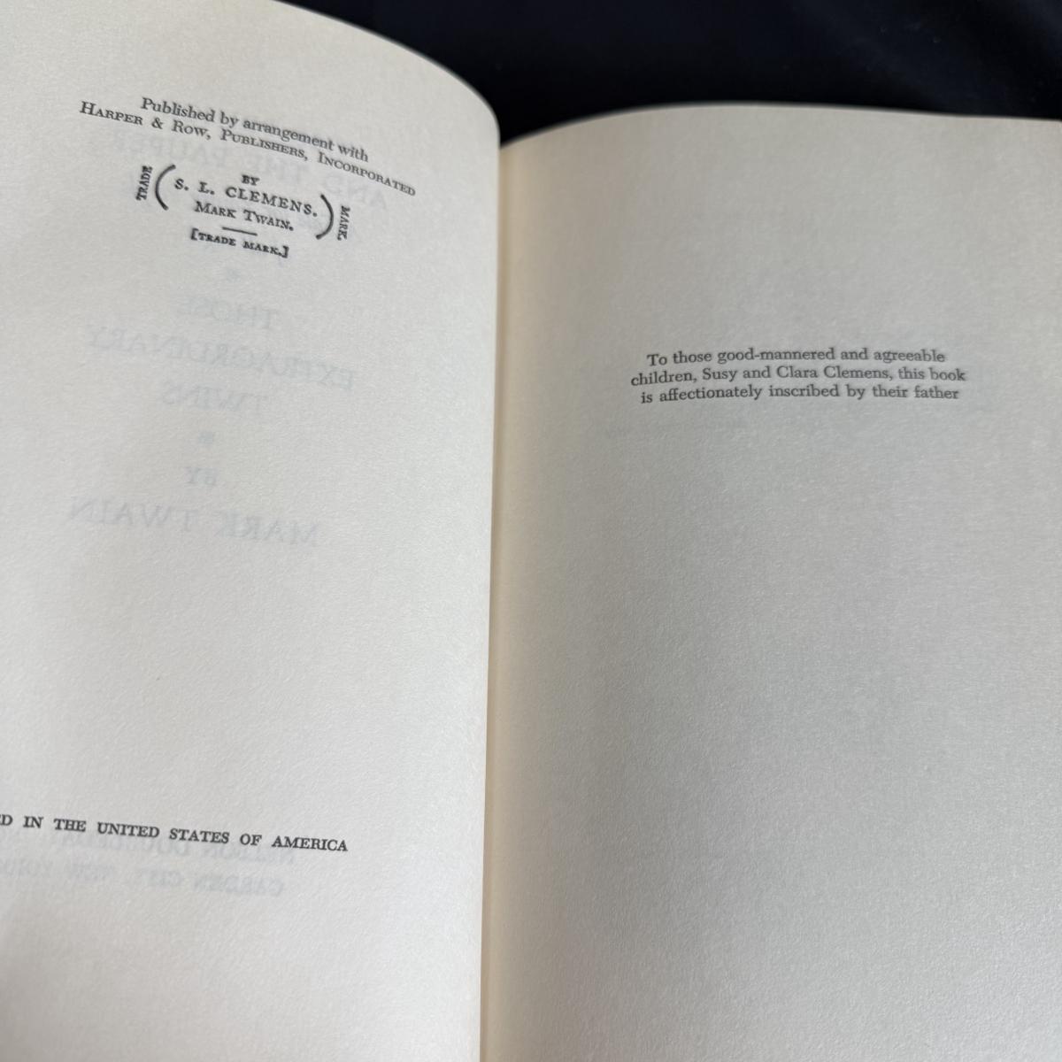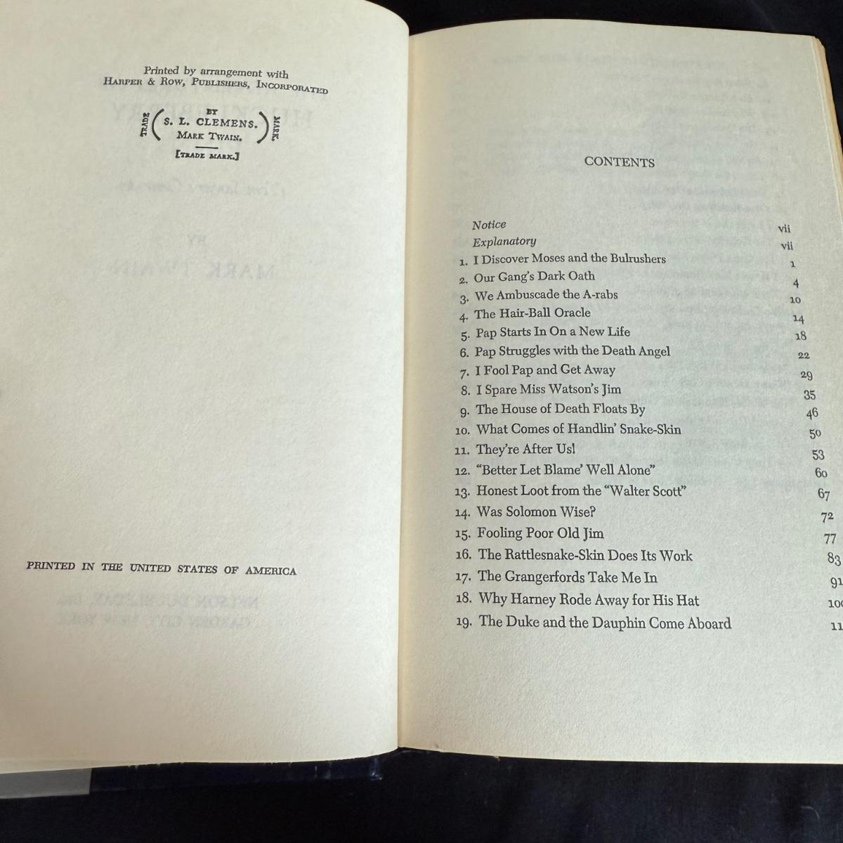 This lot contains ‘The Complete Novels of Mark Twain’ that is a total of seven books. All of the books match with the same covers. In this collection we have The American Claimant/ Pudd’nhead Wilson, The Personal Recollections of Joan of Arc, Huckleberry Finn, Tom Sawyer, A Connecticut Yankee in King Arthur’s Court, The Gilded Age, The Prince and the Pauper/Those Extra-ordinary Twins. There are some corners that are a bit scuffed, and in a strange twist A Connecticut Yankee has been printed backwards and upside down from its binding. Each book measures 5.75” x 8.5”. Shipping available.