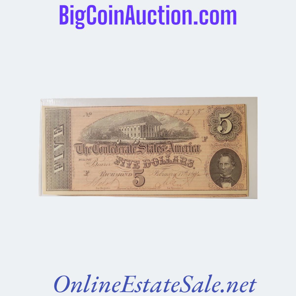 THE CONFEDERATE STATES AMERICA 5 DOLLAR NOTE