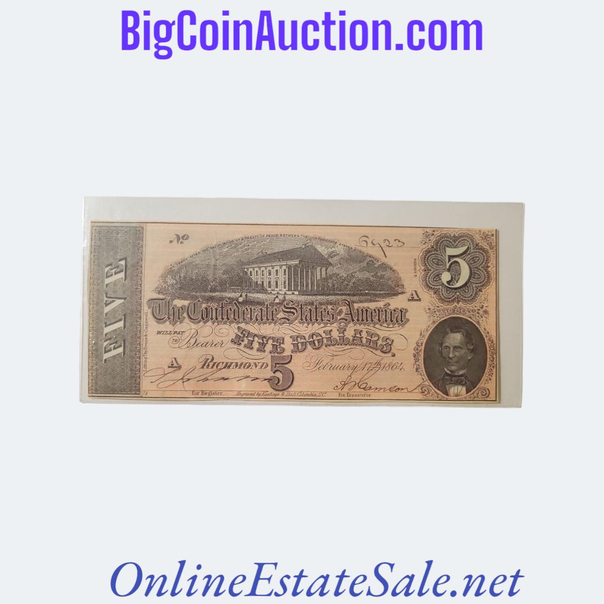 THE CONFEDERATE STATES AMERICA FIVE DOLLARS NOTE