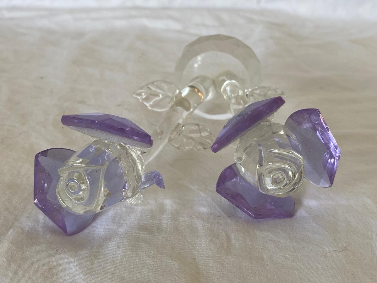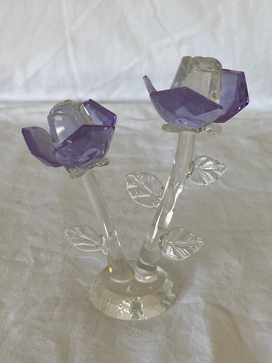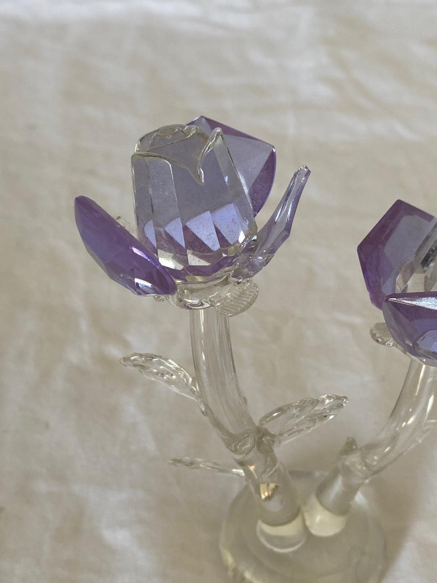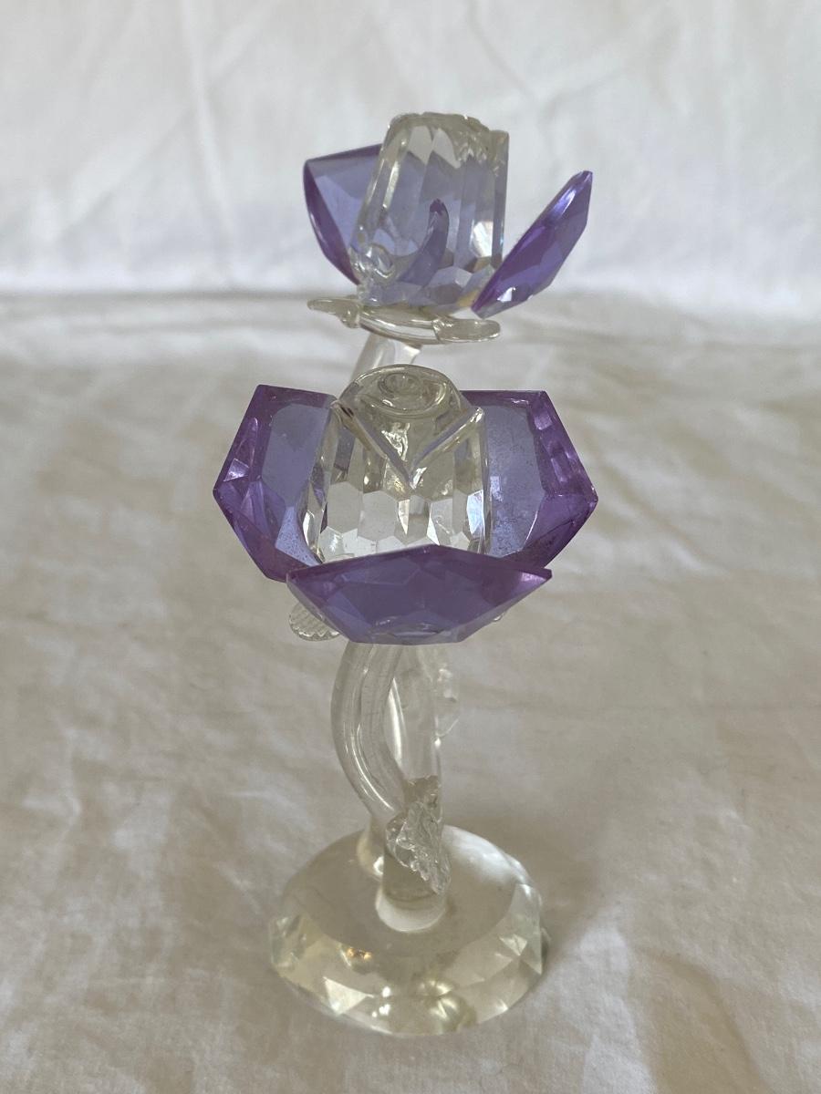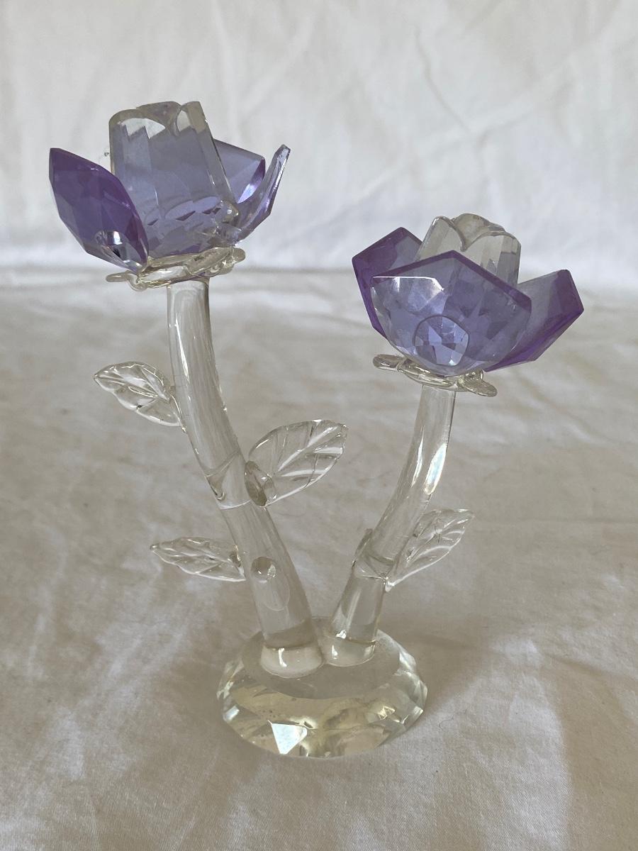 Crystal figurine lot. Please note that one of the purple petals is broken. Please see photos for condition. All preowned and sold as is