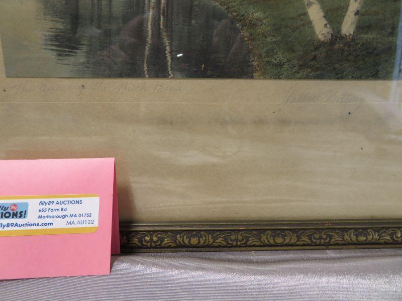 Vintage Framed ART Titled "The Curve of The Birch Bank" signed by Wallace Nutting (early 1900's). Gold gilded Wood Frame. Please NOTE: Condition of Matting. Measures 15" x 18". Please preview and email questions / concerns prior to bidding.