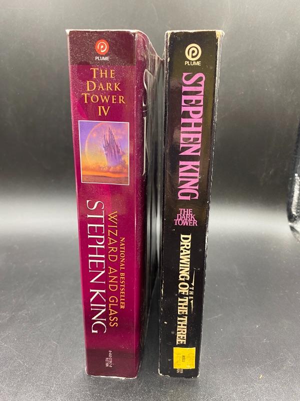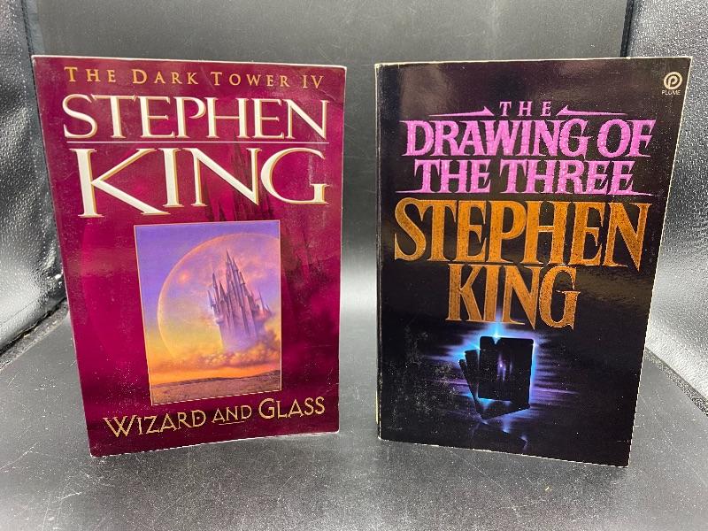 Books II and IV from Stephen Kings The Dark Tower series. Book II is The Drawing of the Three and book IV is Wizard and Glass. Both are soft cover, previously read condition.