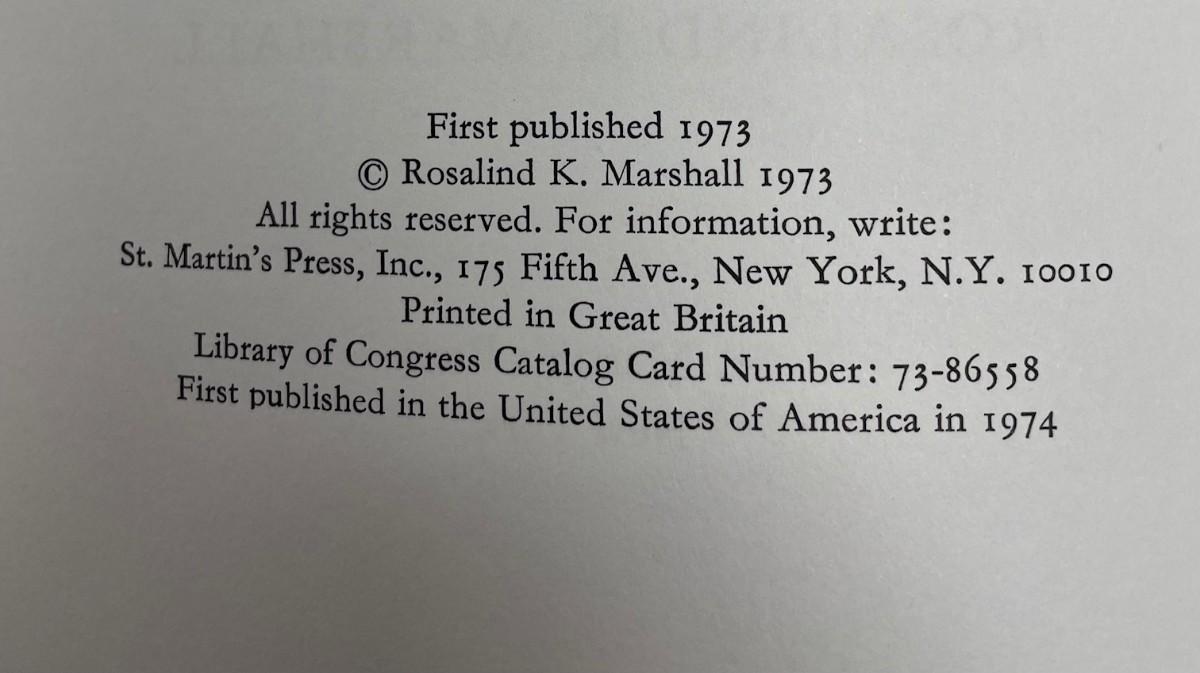Description: The Days of Duchess Anne Duchess of Hamilton 1656-1716 by Rosalind K. Marshall copyright 1973; Material: Paper