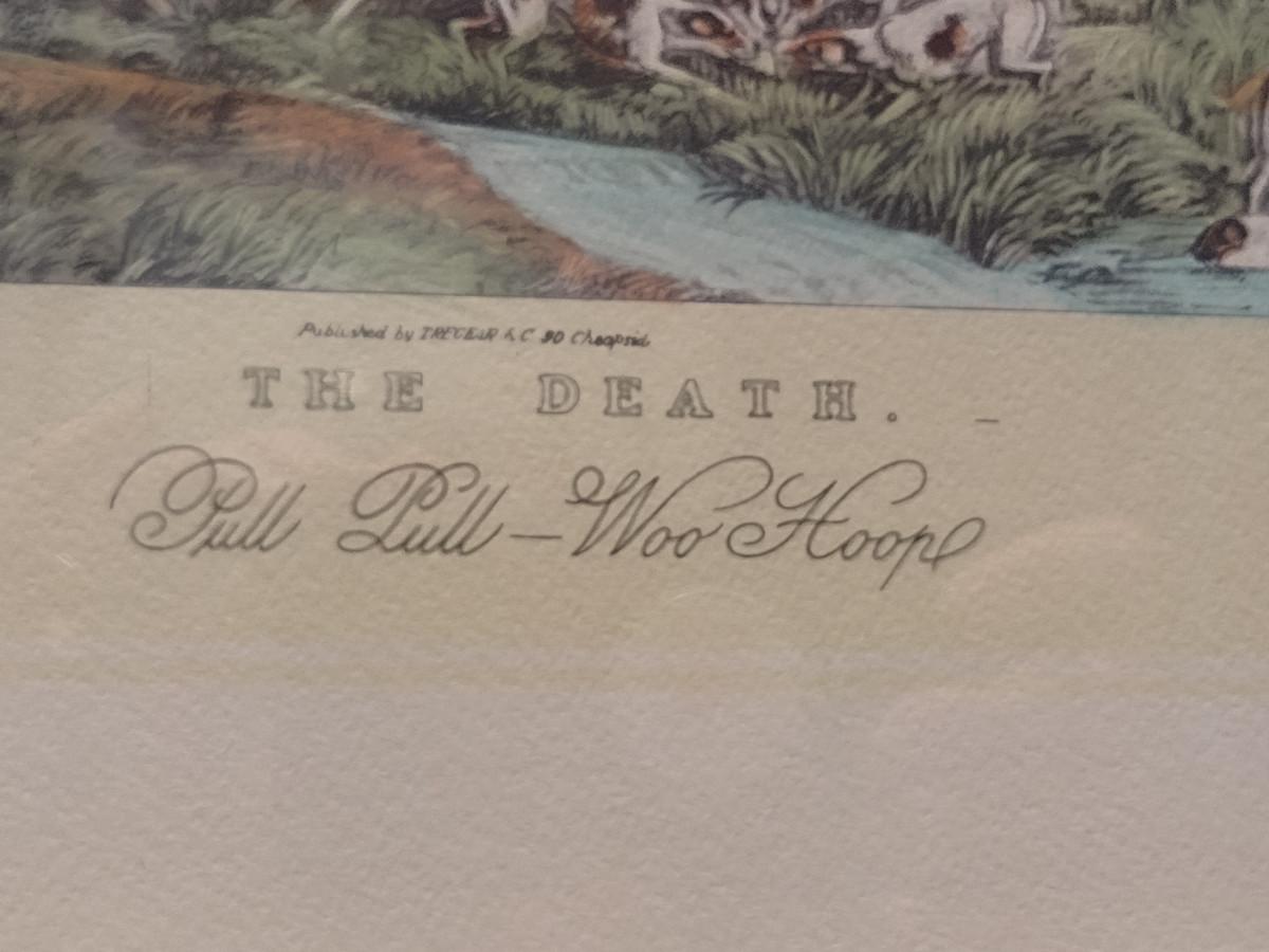 'The Death: Pull Pull- Woo Hoop' The Pytchley Hunt- Equestrian Print Framed Behind Glass. Approx 21 3/4" x 26 3/4".