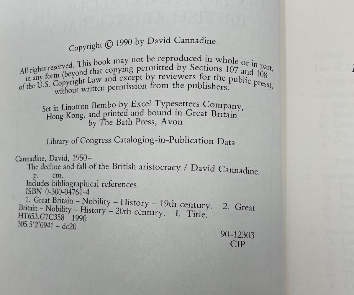 Description: The Decline & Fall of the British Aristocracy by David Cannadine copyright 1990; Material: Paper