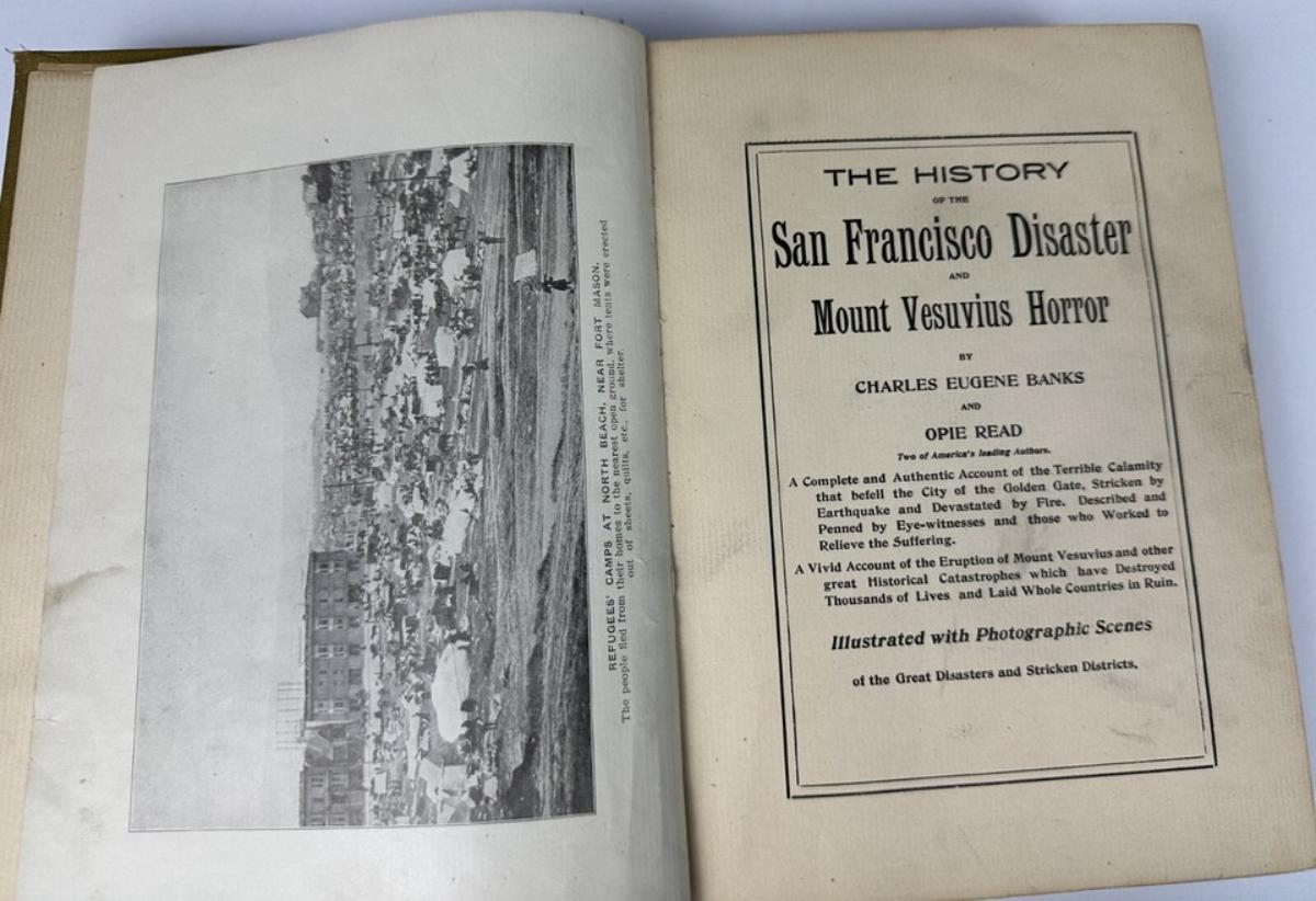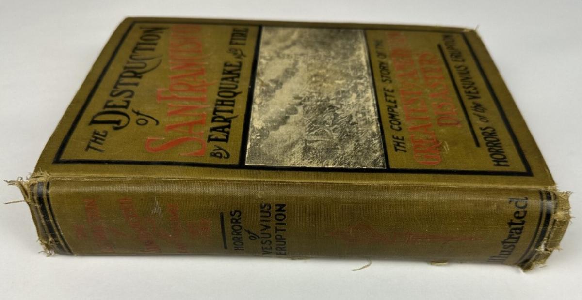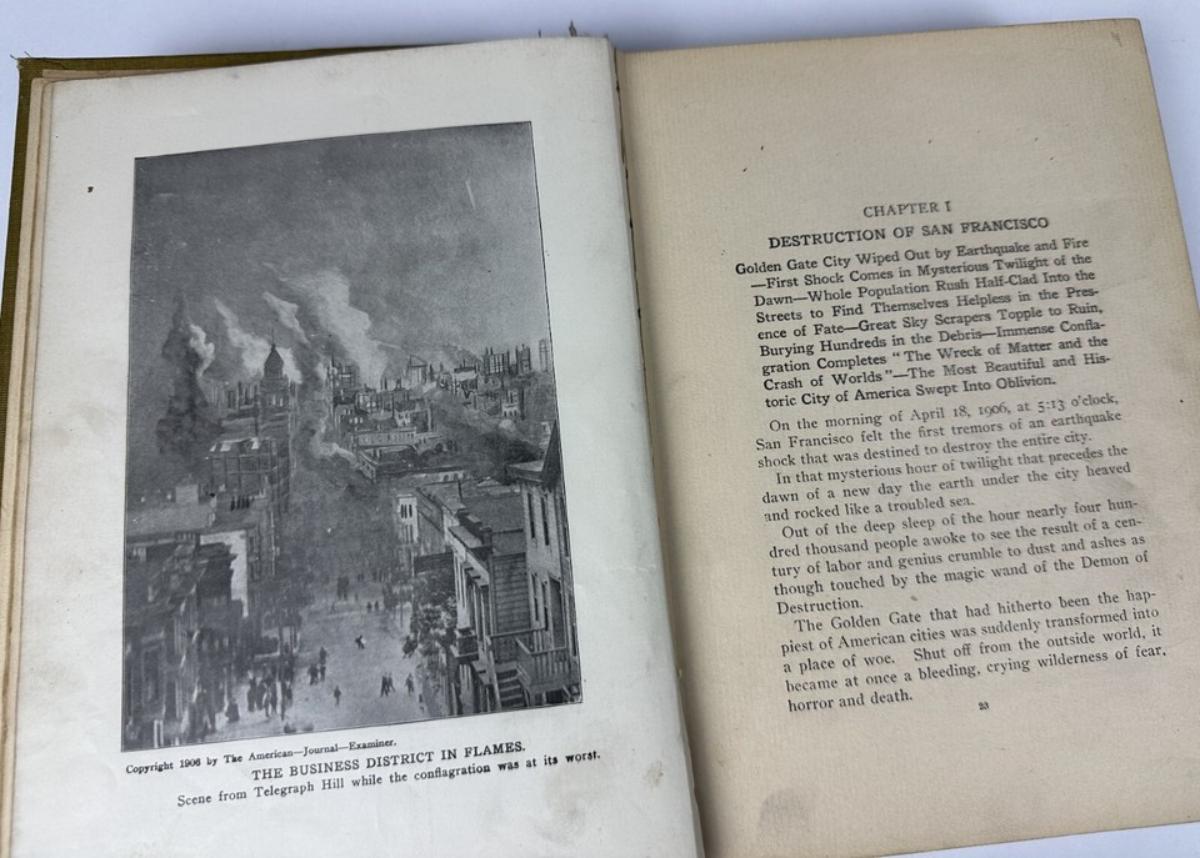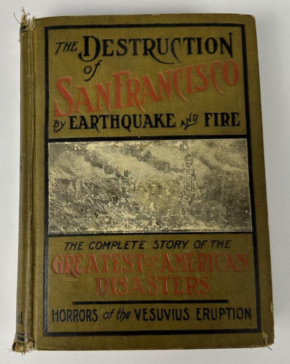 "The Destruction of San Francisco By Earthquake and Fire: The Complete Story of the Greatest of American Disasters" – Charles Eugene Banks & Opie Read...Published soon after in 1906..Hard Cover 464 Pgs. Pictorial cover with light soiling, corners bumped. Pages intact but spine is broken. Needs rebinding. Numerous B/W photos..