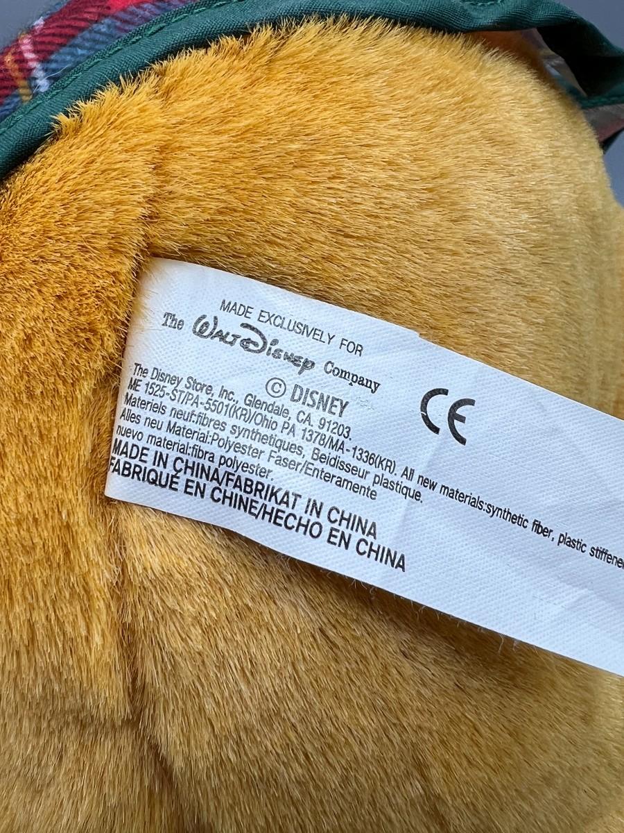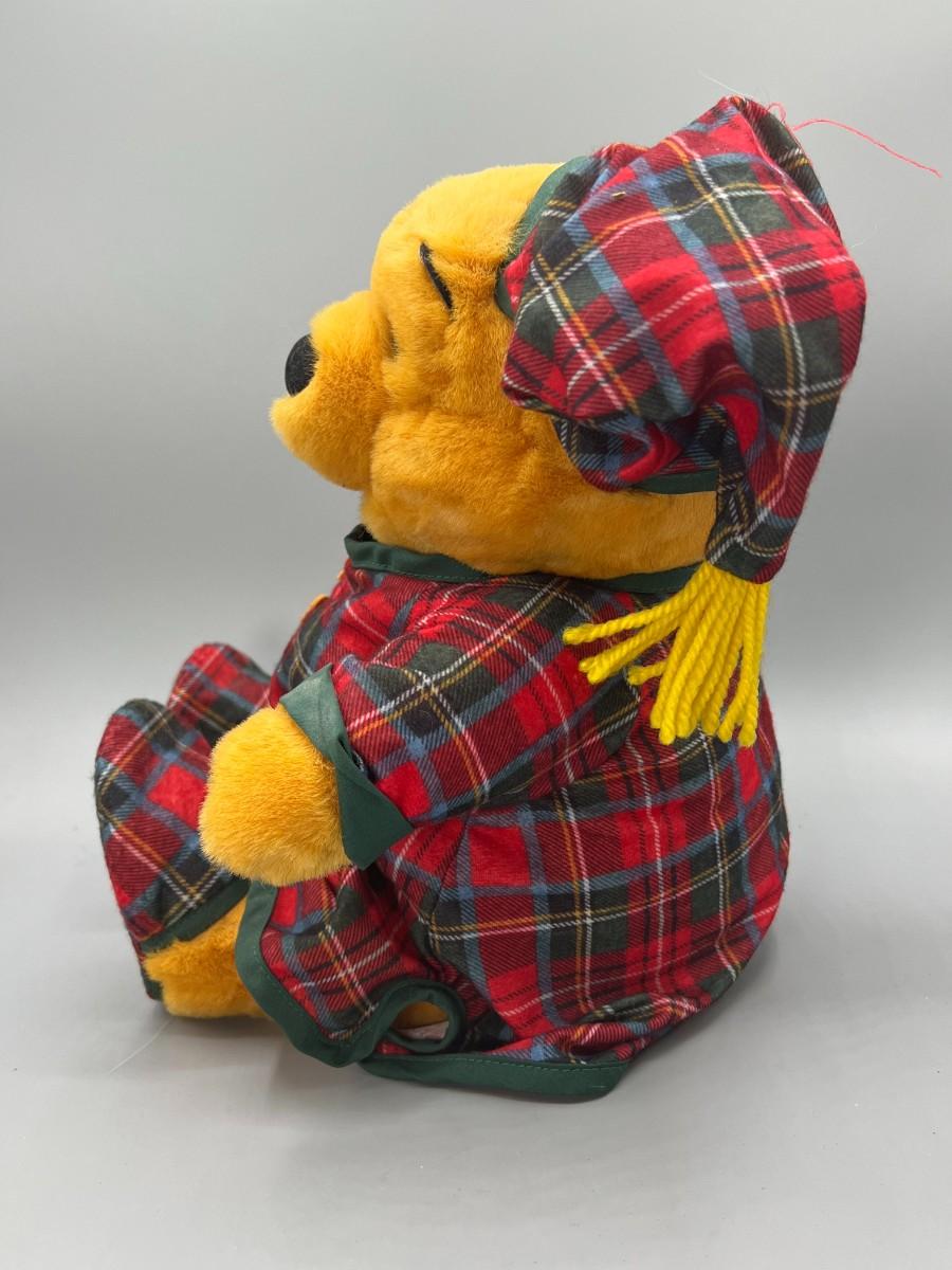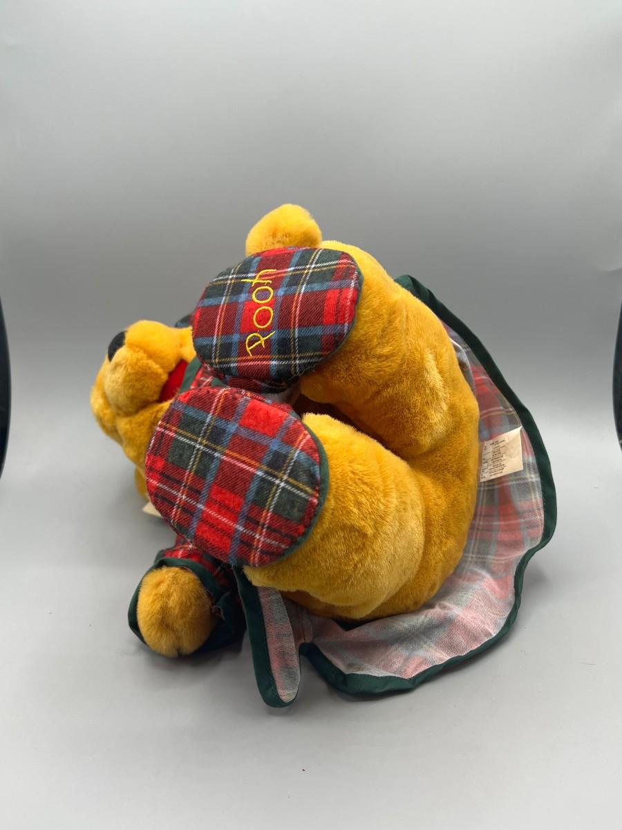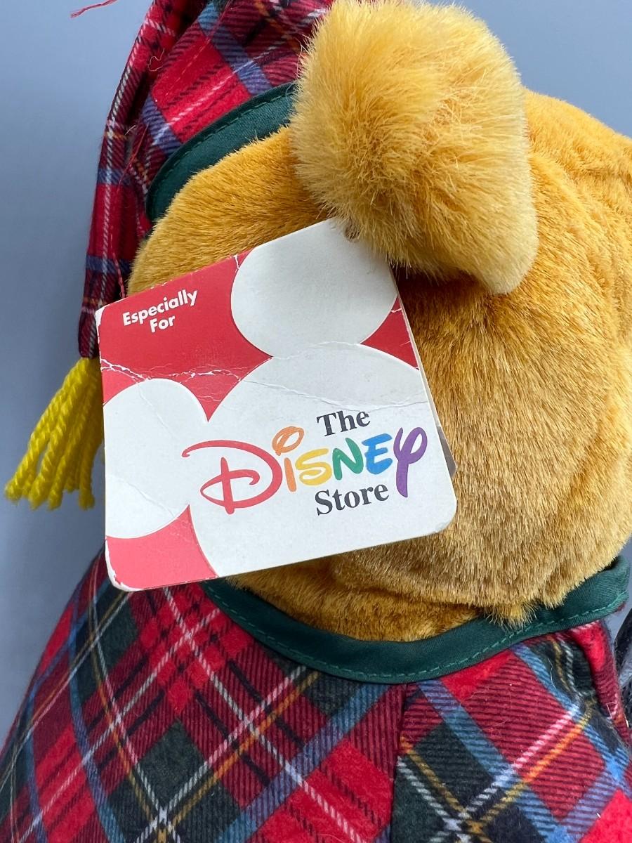 The Disney Store red plaid pajama wearing Winnie the Pooh plush. Original tags attached. Good condition. May be dusty from age, display, and storage.