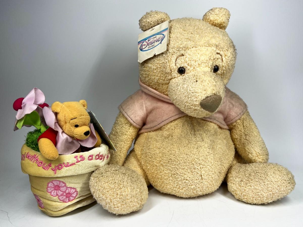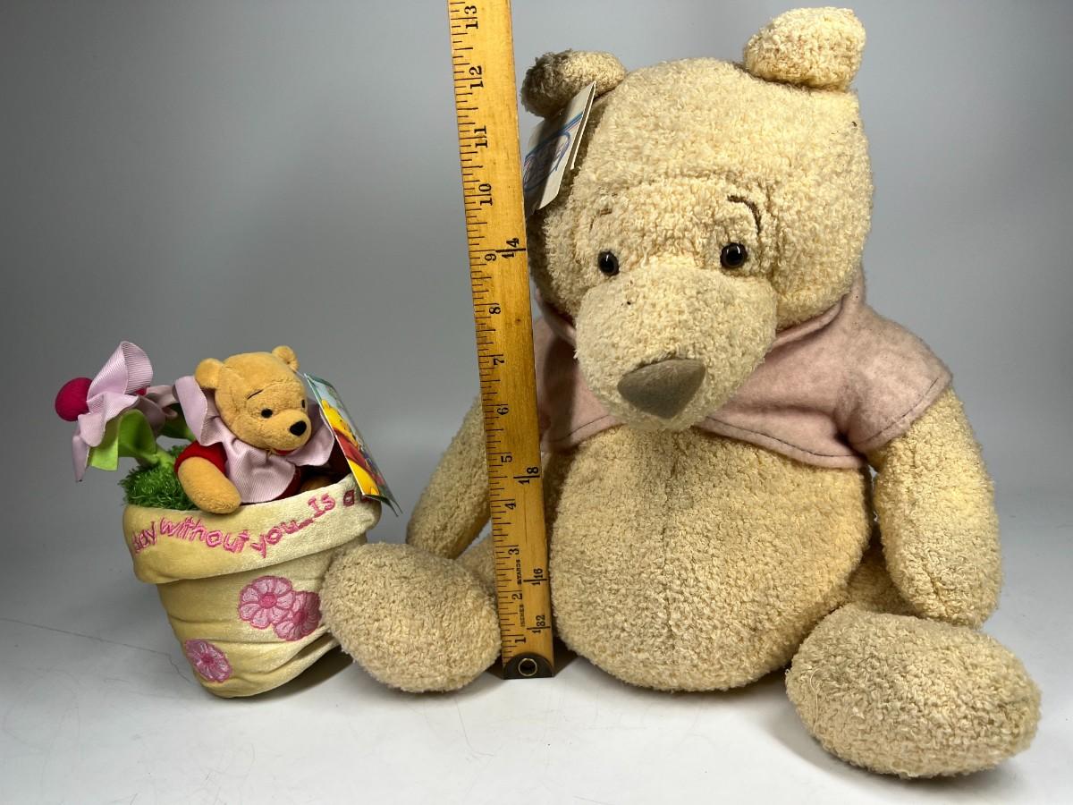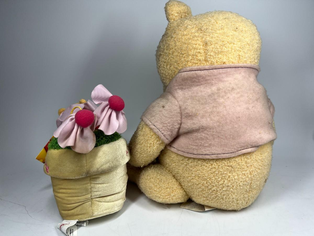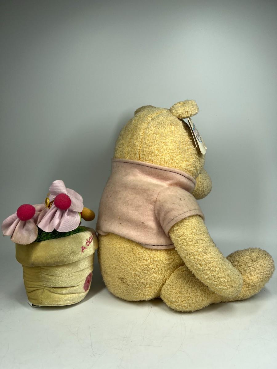 The Disney Store Soft Felt Light Colored Winnie the Pooh Plush & Pooh in Flower Planter Pot, there is no significant rips or tears to either of the plushies and is in good collectible condition. Check pictures for more details and for sizing.
