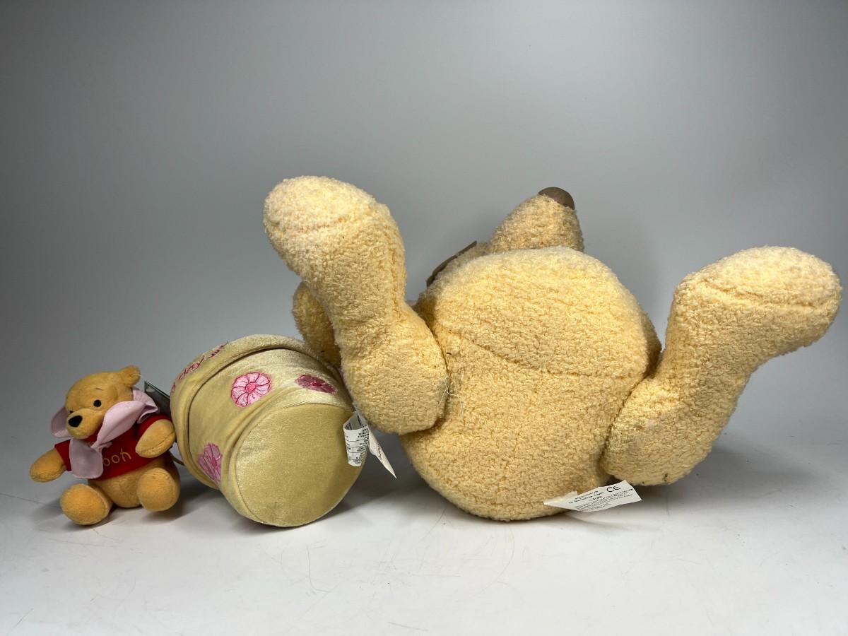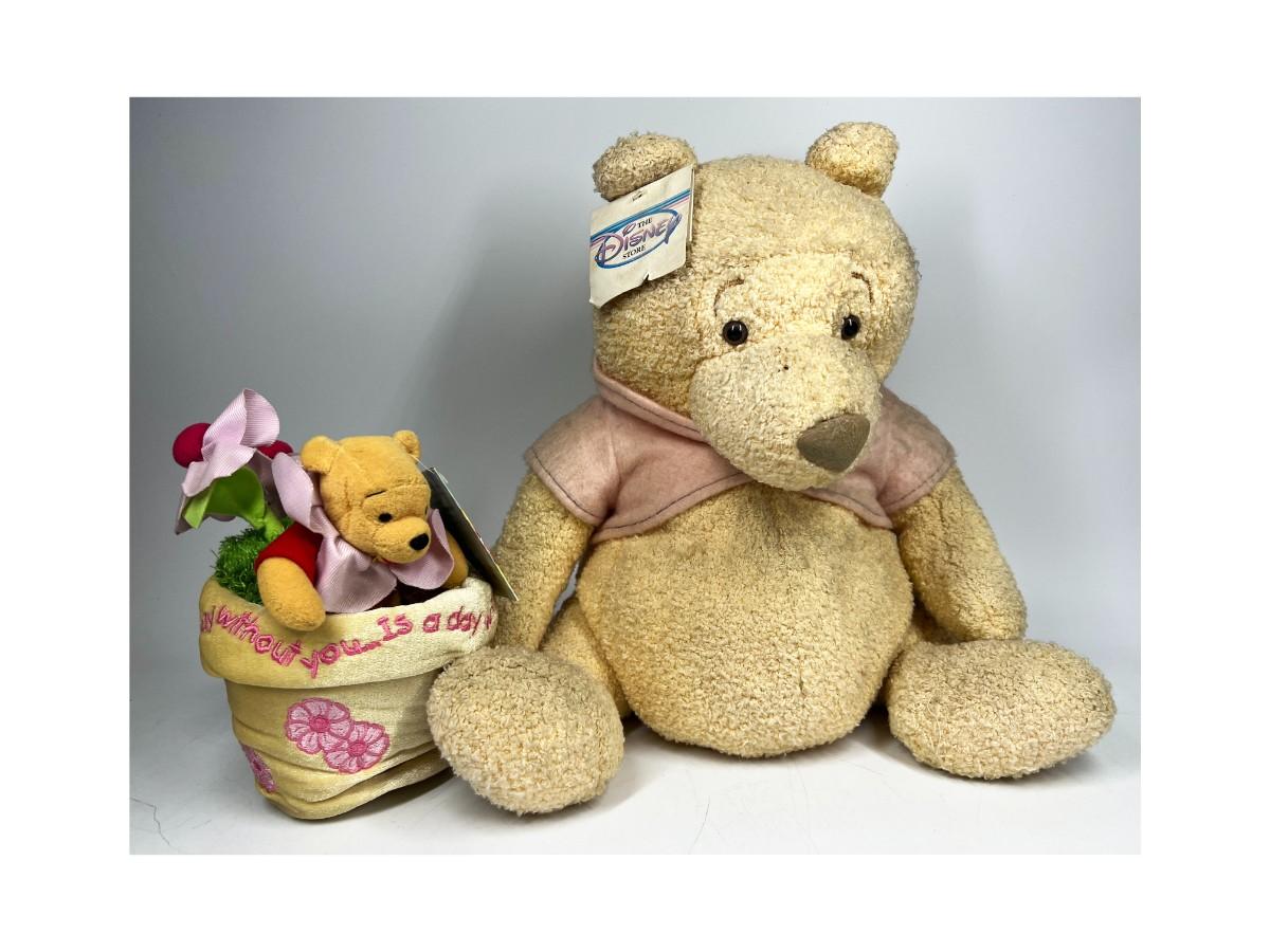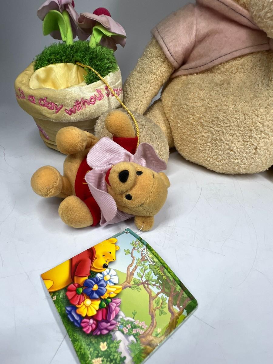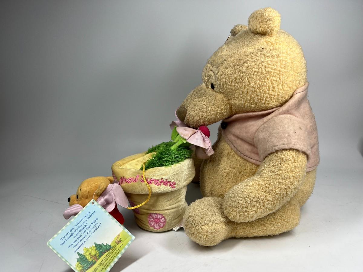 The Disney Store Soft Felt Light Colored Winnie the Pooh Plush & Pooh in Flower Planter Pot, there is no significant rips or tears to either of the plushies and is in good collectible condition. Check pictures for more details and for sizing.