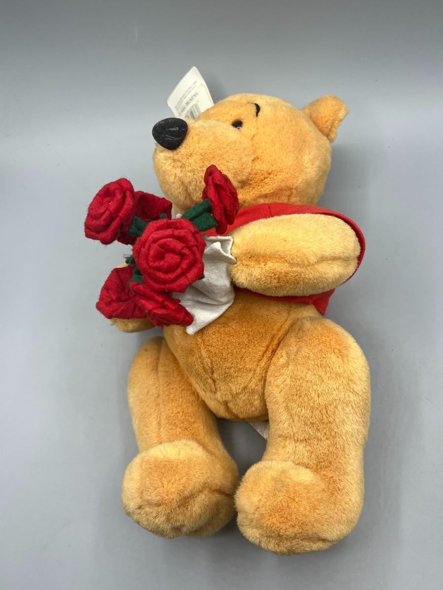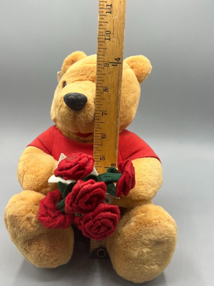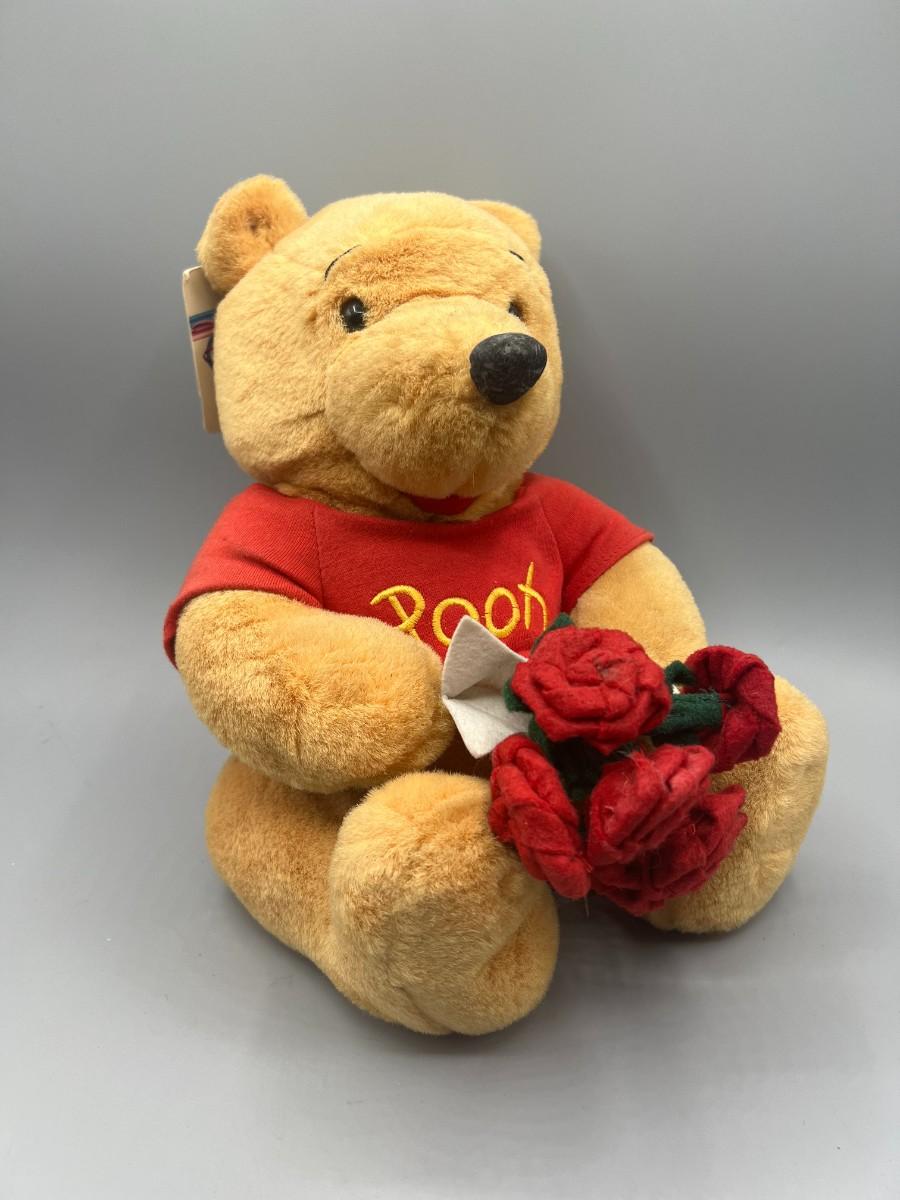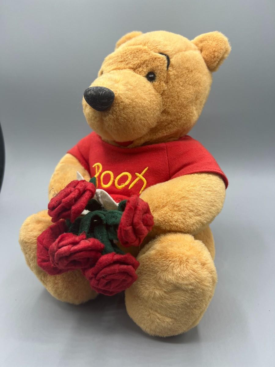 The Disney Store Winnie the Pooh with Roses Soft Plushie, there is no significant rips or tears to the plush and is in good collectible condition. Check pictures for more details and for sizing.