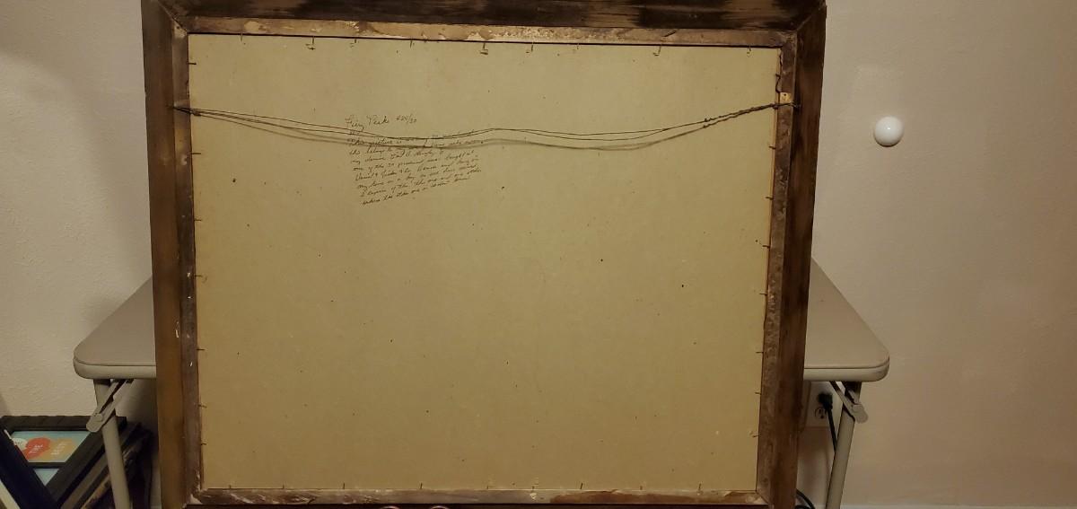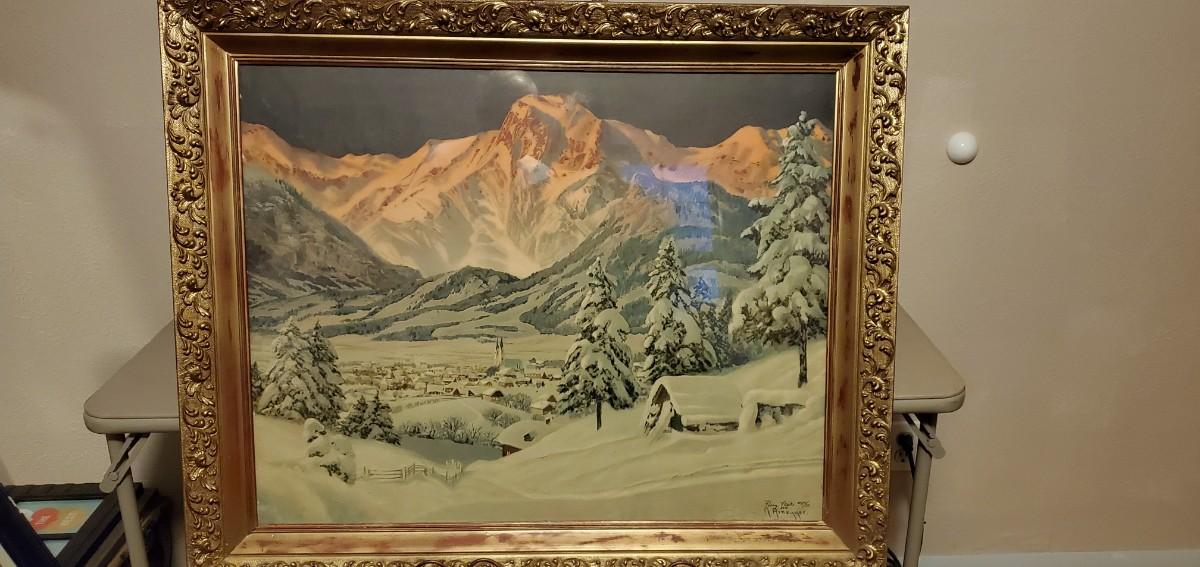 Beautiful picture framed in a 35 and 3/4 by 29 and a 1/2 inch frame the frame does have Filigree on the outside of frame
