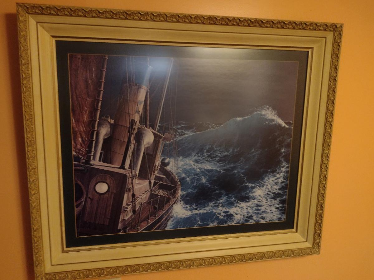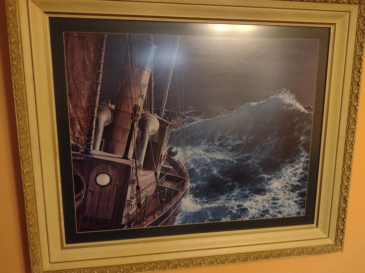 'The End of the Storm' by Loren D. Adams, Jr Print- Framed Under Glass- Approx 29 1/2" x 35 1/2". Item is in nice, textured frame.