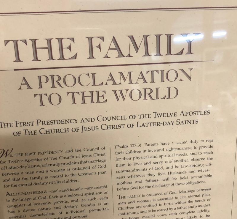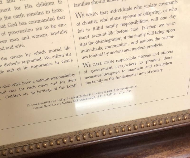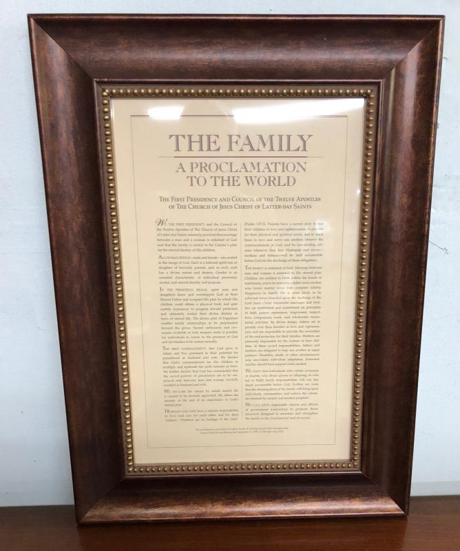 Framed LDS Family Proclamation issued to the world....17 x 23"...Circa 1995...