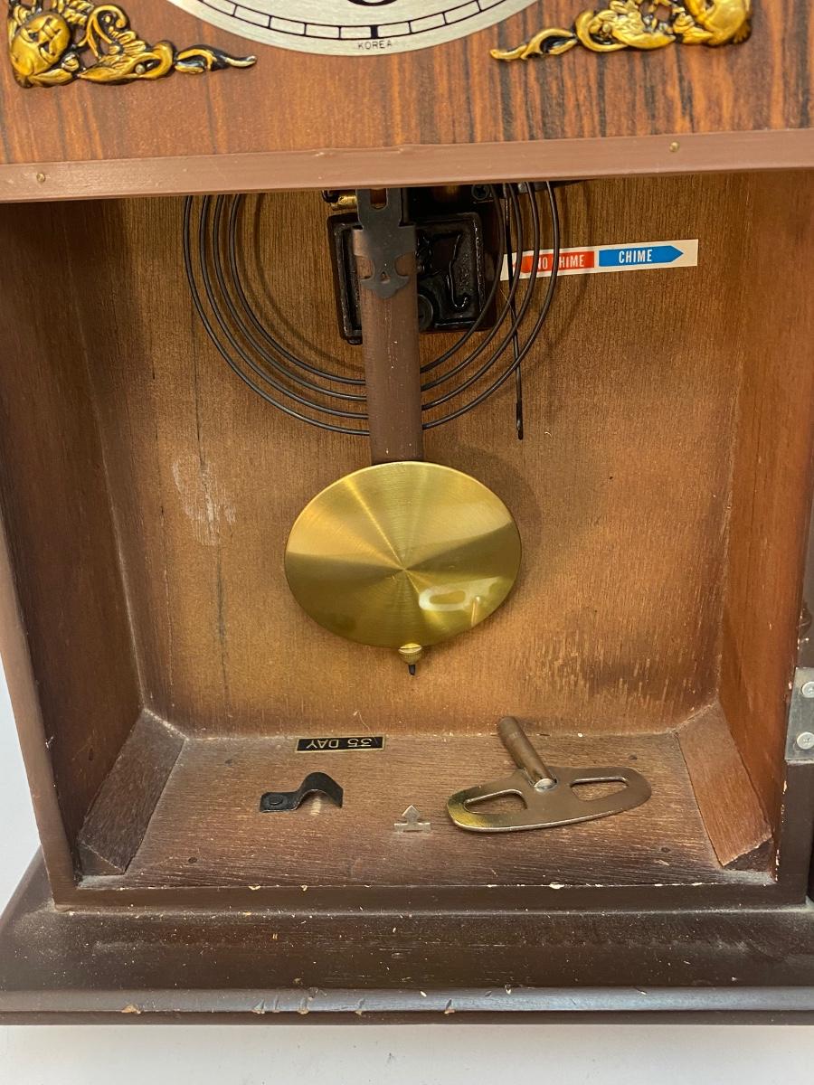The clock is NOT running. There is no significant damage and is in overall good collectible condition, check pictures for more details and for sizing.