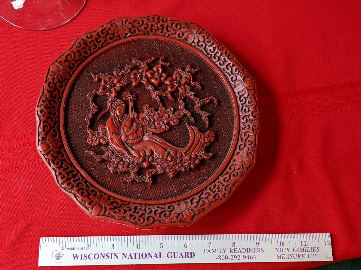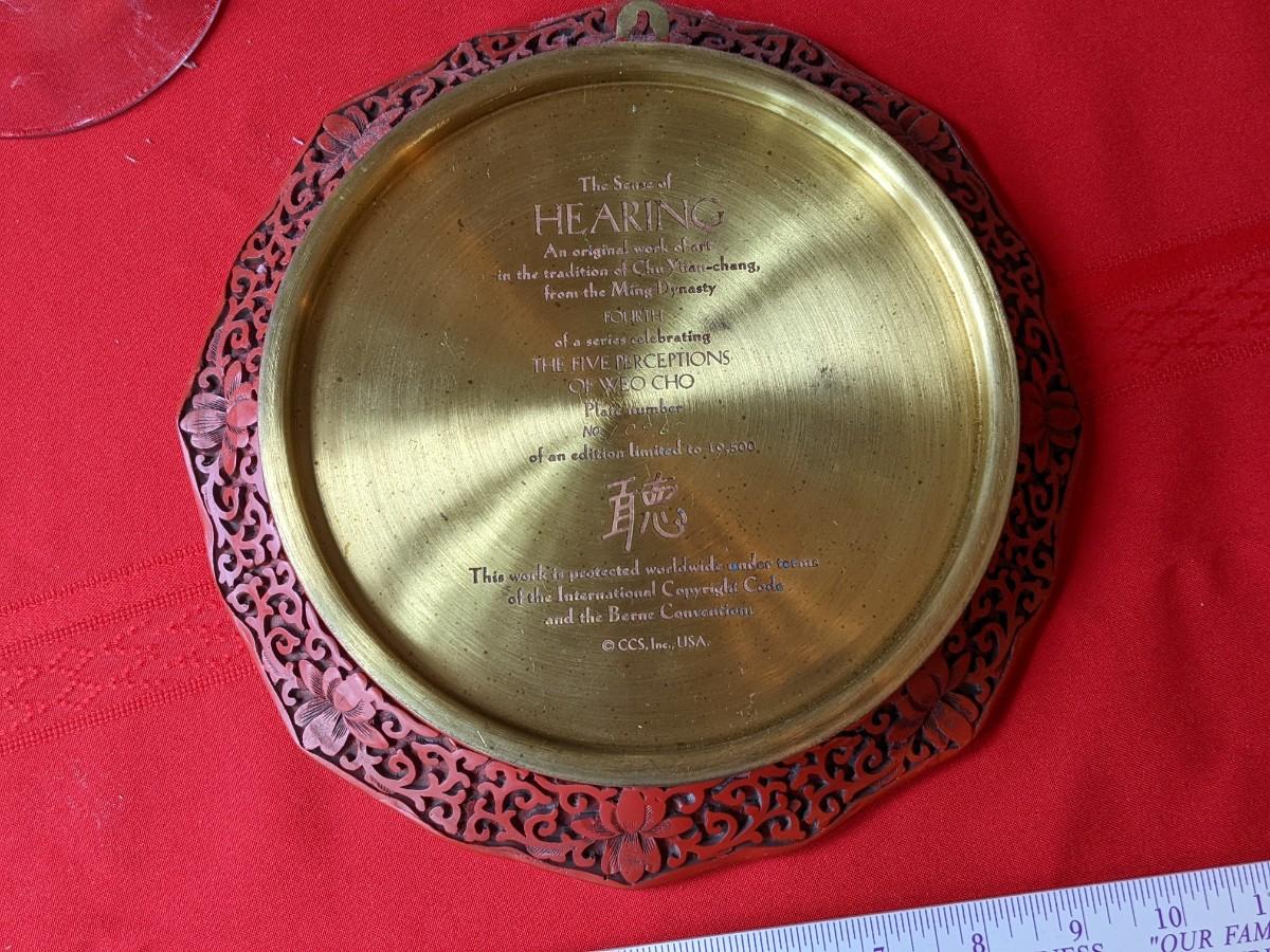 Plate Depicting HEARING Made in Japan Cinnabar plate. Excellent condition.