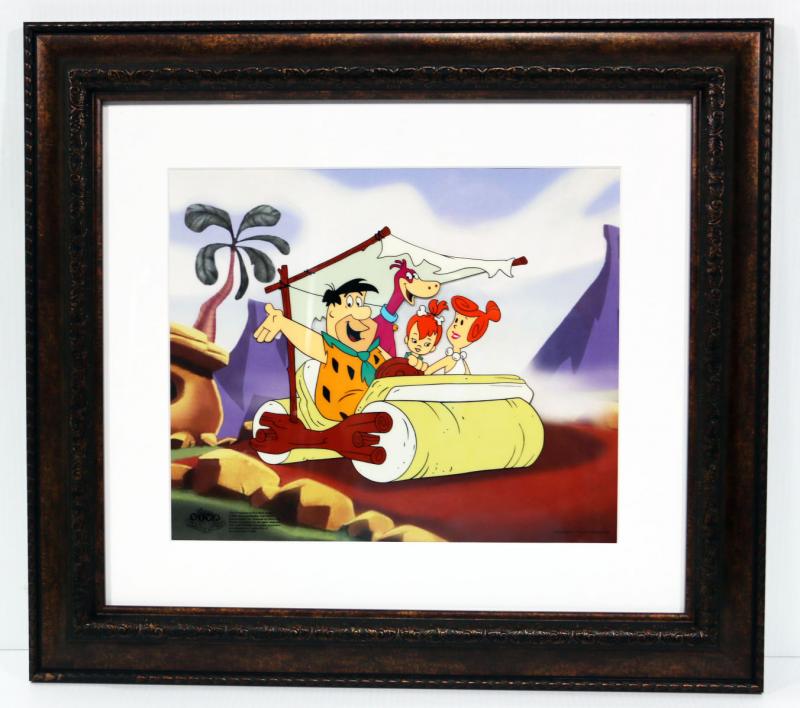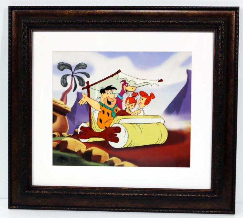 The Flintstones "The Flintstones Family Car" Original Cericel Art, Hanna-Barber circa 2000, Image size 12" x 10", framed size 20" x 18", comes with the Certificate of Authenticity, New condition.