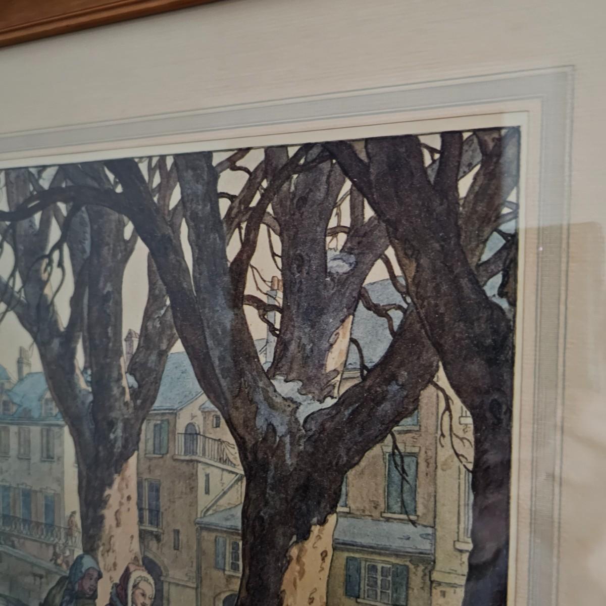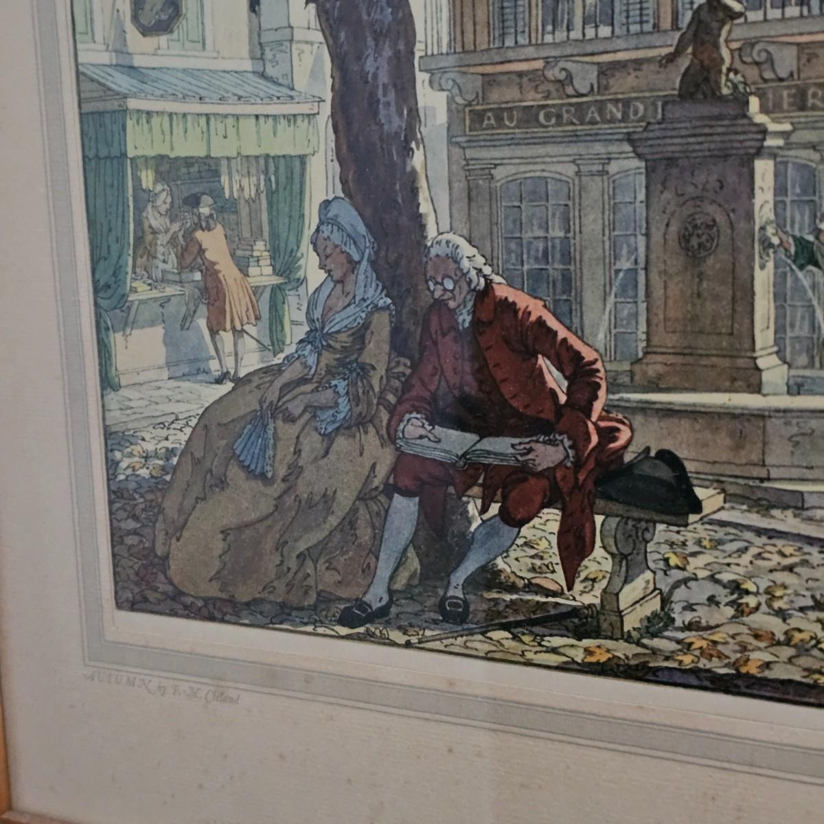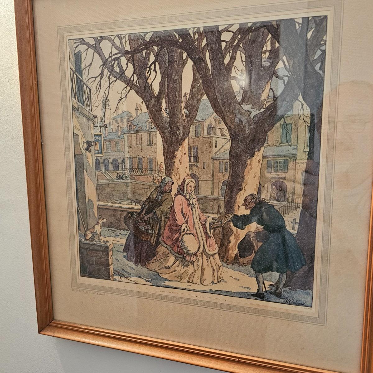 Four 1930's era depictions of the four seasons as interpreted by the artist T.M. Cleland. Images showing home life throughout the year in this collection of four complementing lithographs. Each item is framed identical and measures 17" x 18.25"H. See photos for details. Shipping available. Shipping can be costly. We suggest contacting our preferred local shipping provider, Postage Express, with dimensions and getting an estimate before bidding: (828) 255-9250 or shipping@postageexpressnc.com.