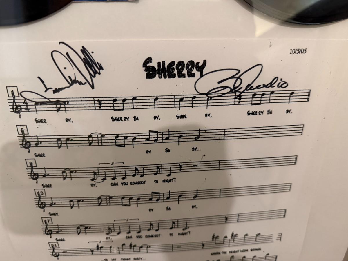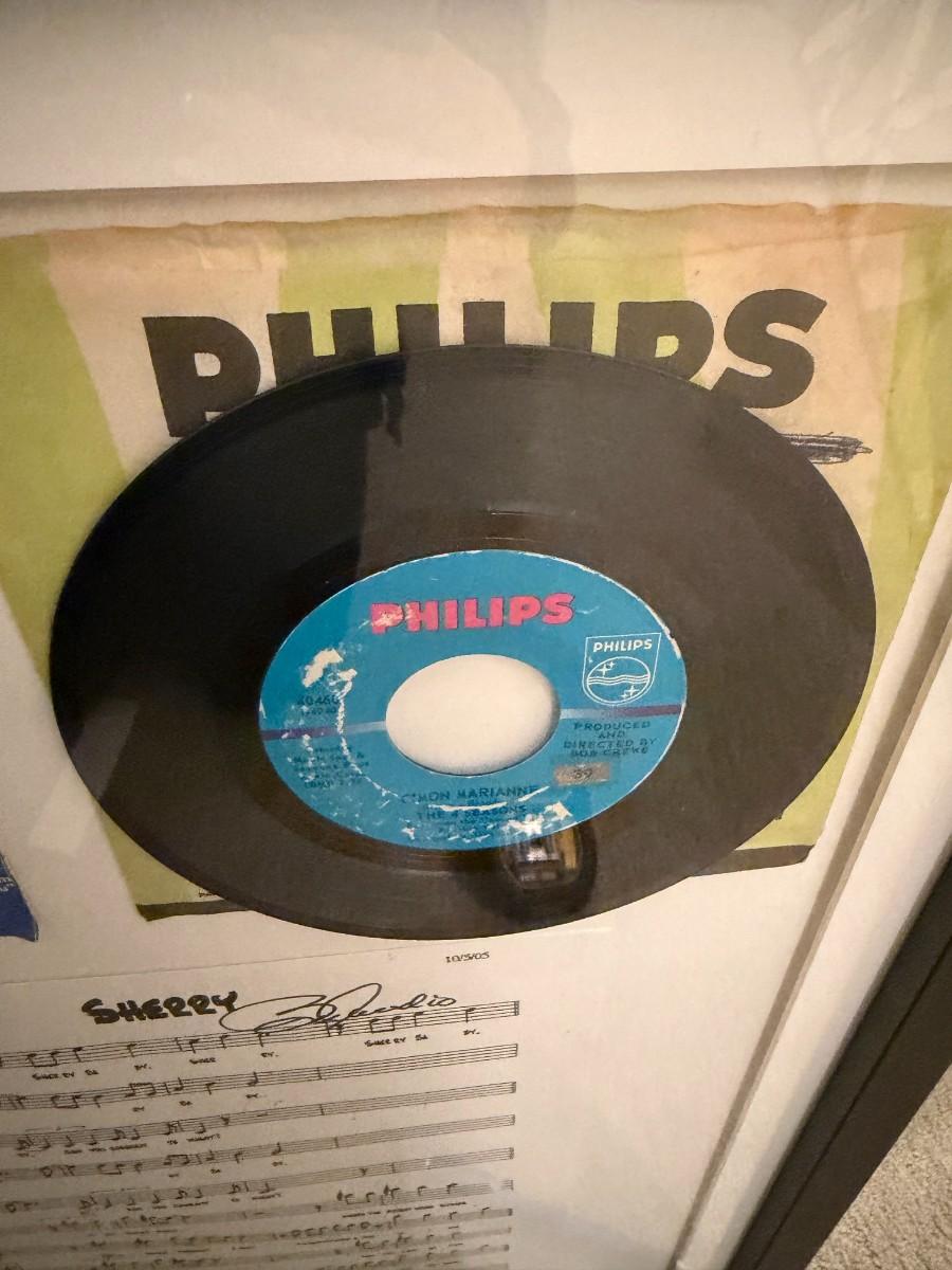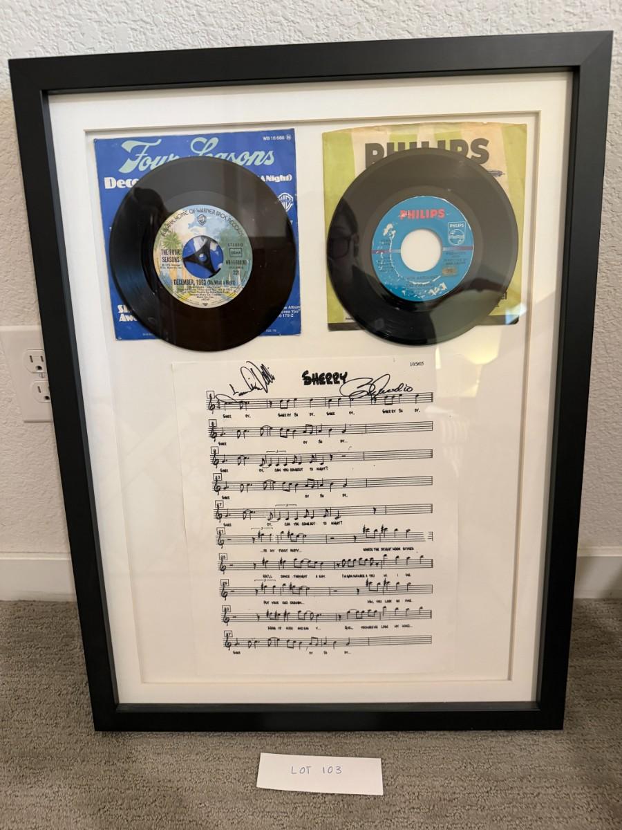 The Four Seasons two 7 inch vinyl set w/ signed Sherry music sheet-framed
