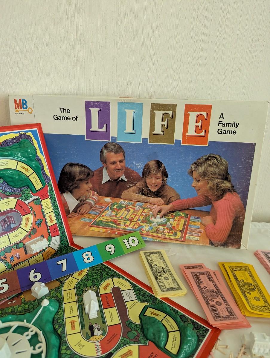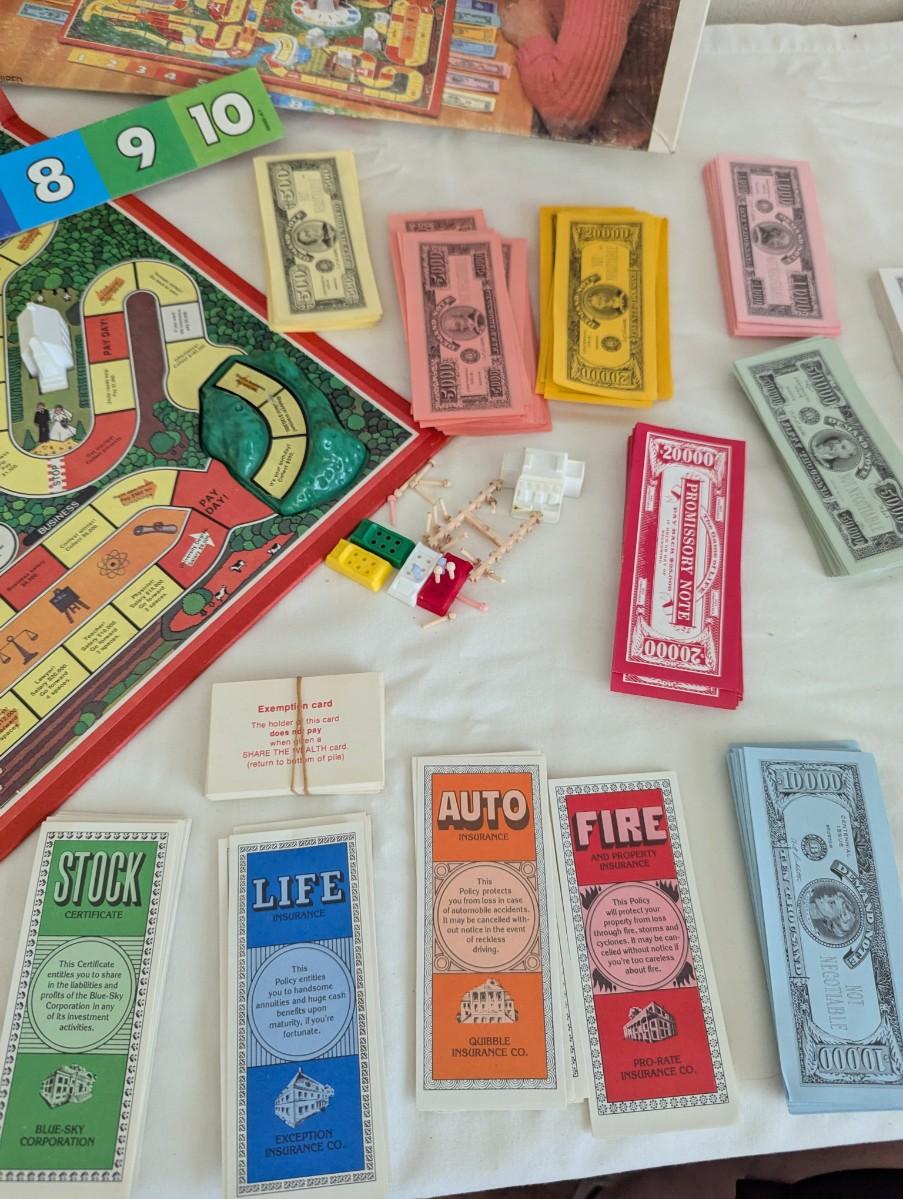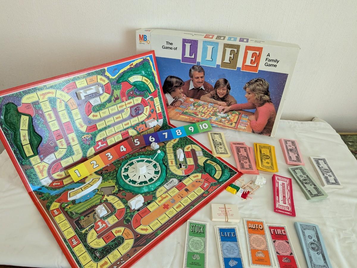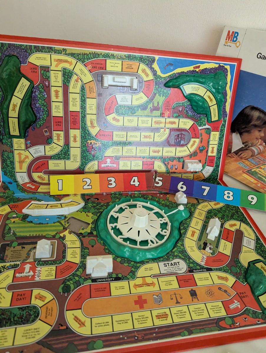 The Game of Life from the 1960's Milton Bradley. All the pieces are there.