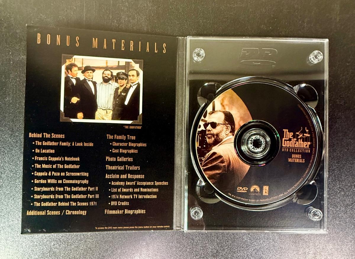 From 2001. Includes The original Godfather movie, Godfather II and Godfather III, and a bonus disc. Used, but in very good condition.