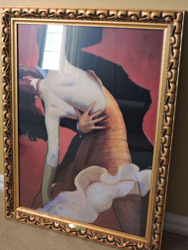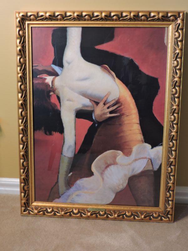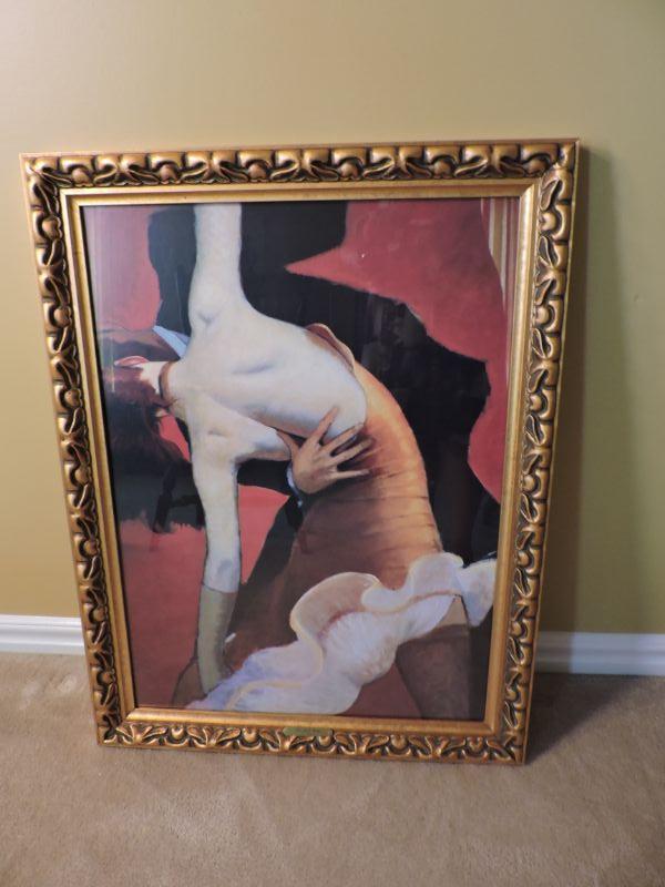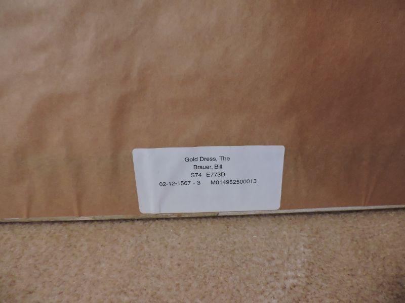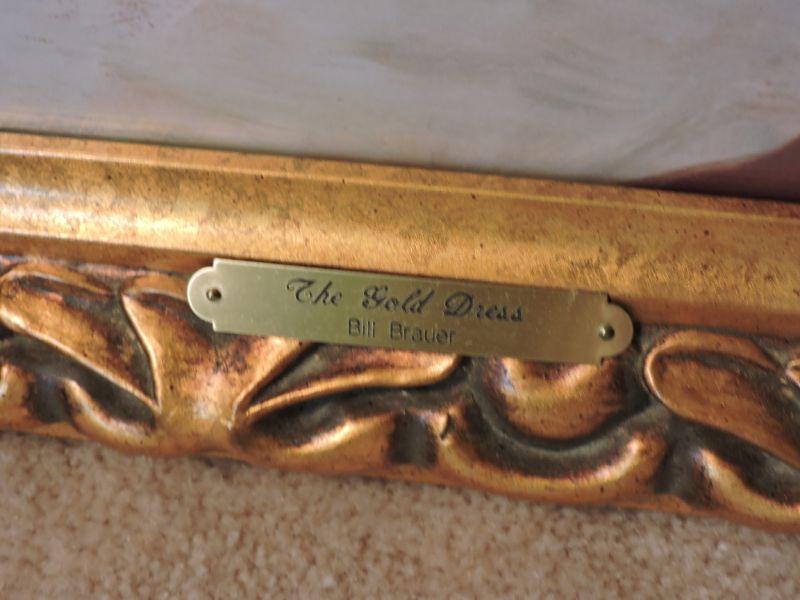 "The Gold Dress" Bill Brauer Framed Print. Framed is 35x26.5 **Please read Terms and Conditions before placing a bid. Pick up is Wednesday, September 25 from 4pm to 7pm and Saturday, September 28 from 9am to 1pm in Williamstown, NJ. All sales are final. All sales are as is, where is. Please review all photos. Any props included in photos are not included in listing. All measurements are approximate.