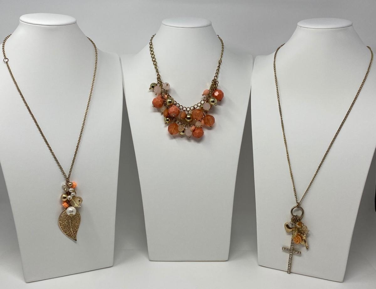 The Gold Tone with Pink and Peach Accent Necklace Lot