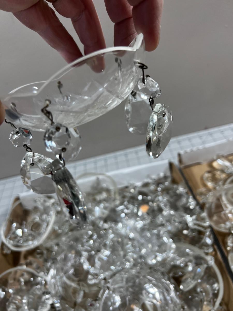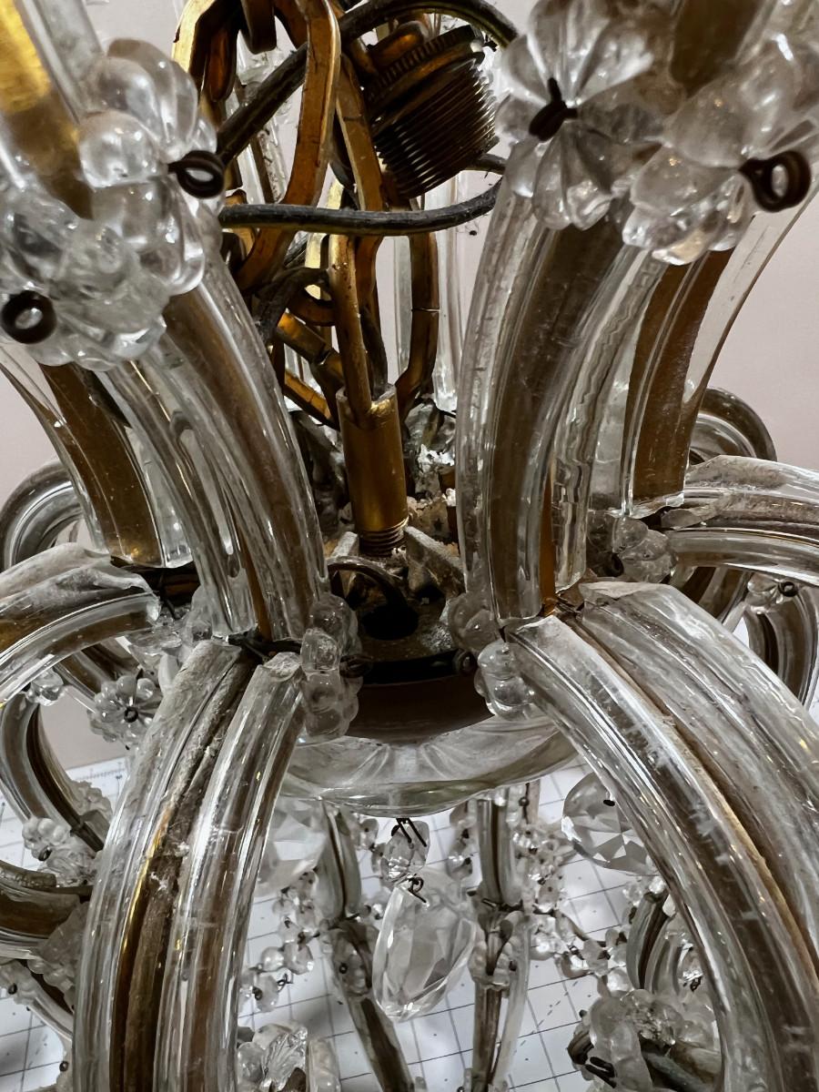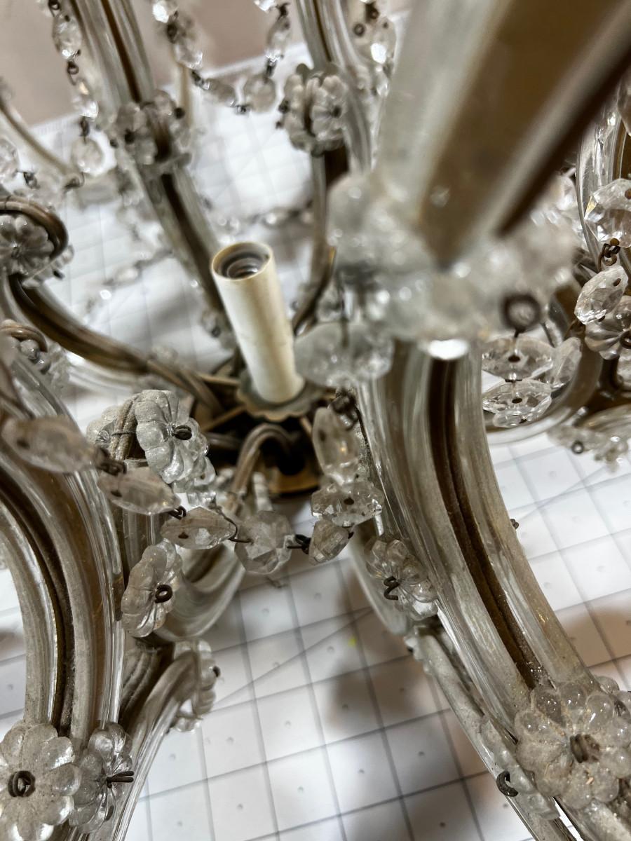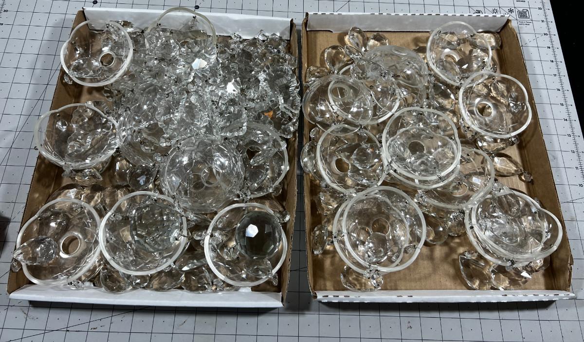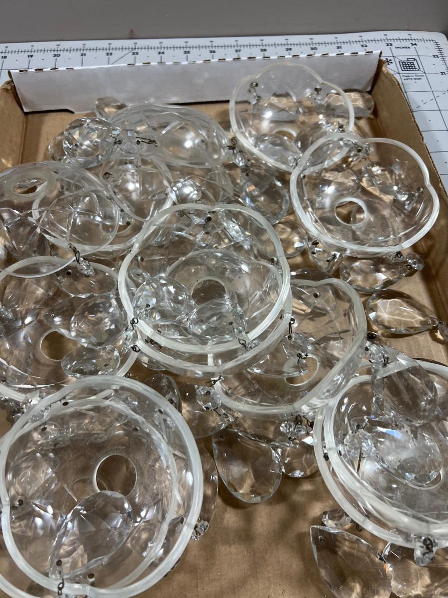 AWESOME! Has 24 Candle Light outlets. May or may not be missing Crystals but appears to have all of them (see photos). Its impressive regardless! TOO BIG TO SHIP. 27" Tall 32 Diameter HEAVY !
