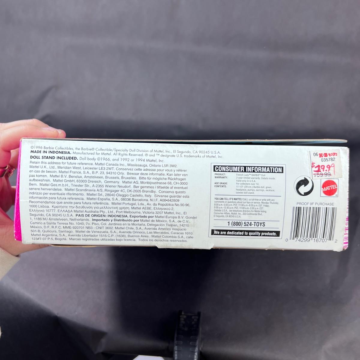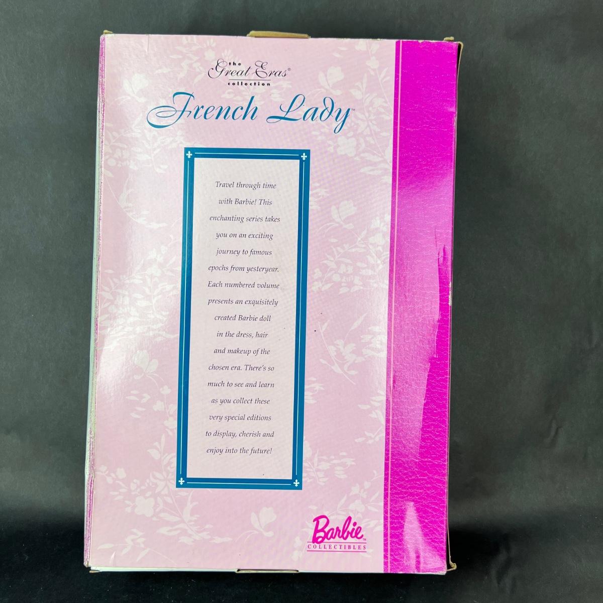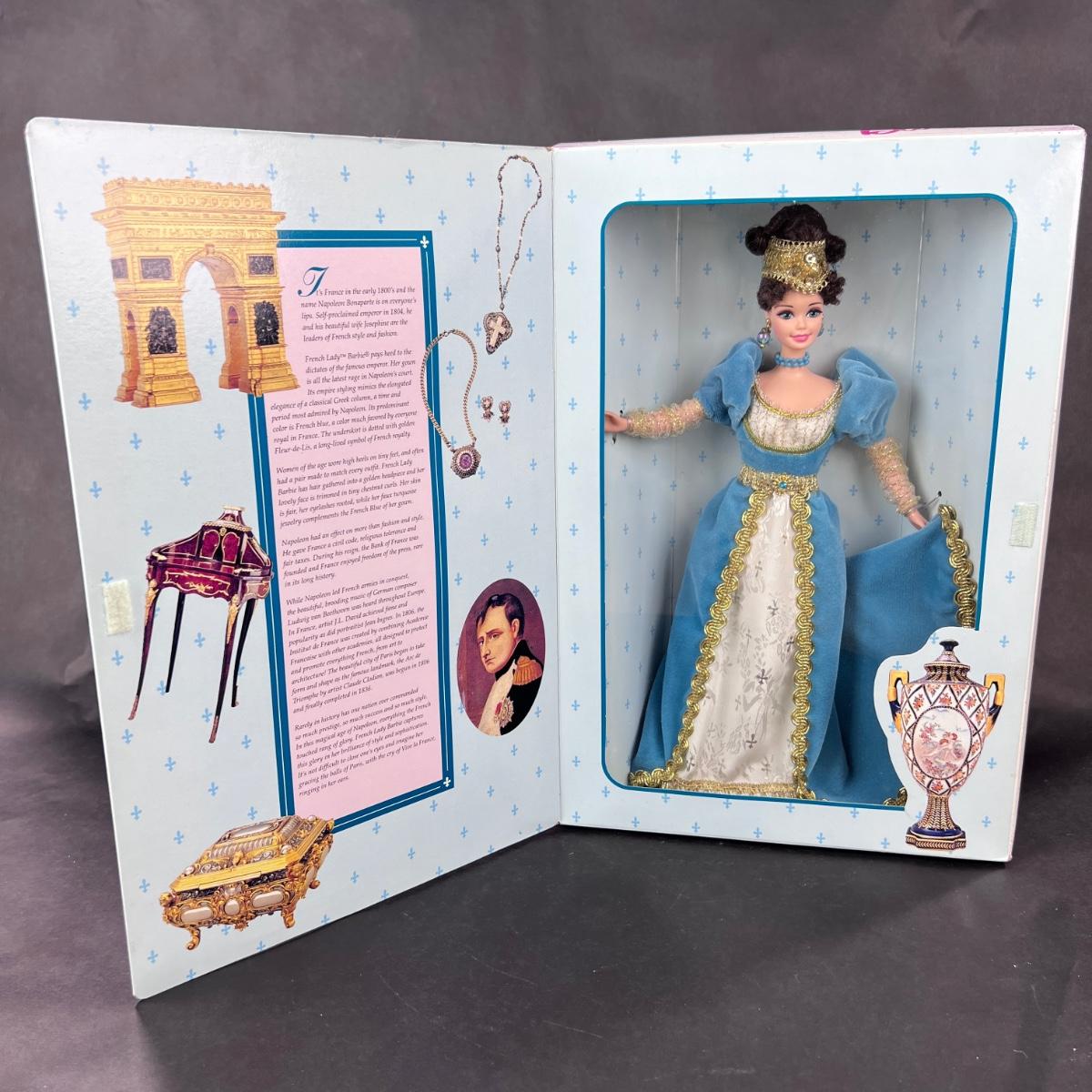 Travel through time with Barbie! This enchanting series take you on an exciting journey to famous epochs from yesteryear. Each numbered volume presents an exquisitely created Barbie doll in the dress, hair and makeup of the chosen era. This time it's a French Lady from the 1800s. This doll was produced by Mattel in 1996. This doll has not been out of its box. **|** Please see photos for details and condition. ::: Shipping is available on this lot. If you require shipping you must let us know at the close of the auction. We will coordinate with you after the item has been won. Shipping fees will include insurance up to or exceeding the value of all items being mailed. If you have any questions regarding this lot please contact the auctioneer either via this website, by direct email or by phone. PICK UP TIMES and other important information can be found in the TERMS and DESCRIPTION of the auction. Please take a look for pertinent information. Thanks!
