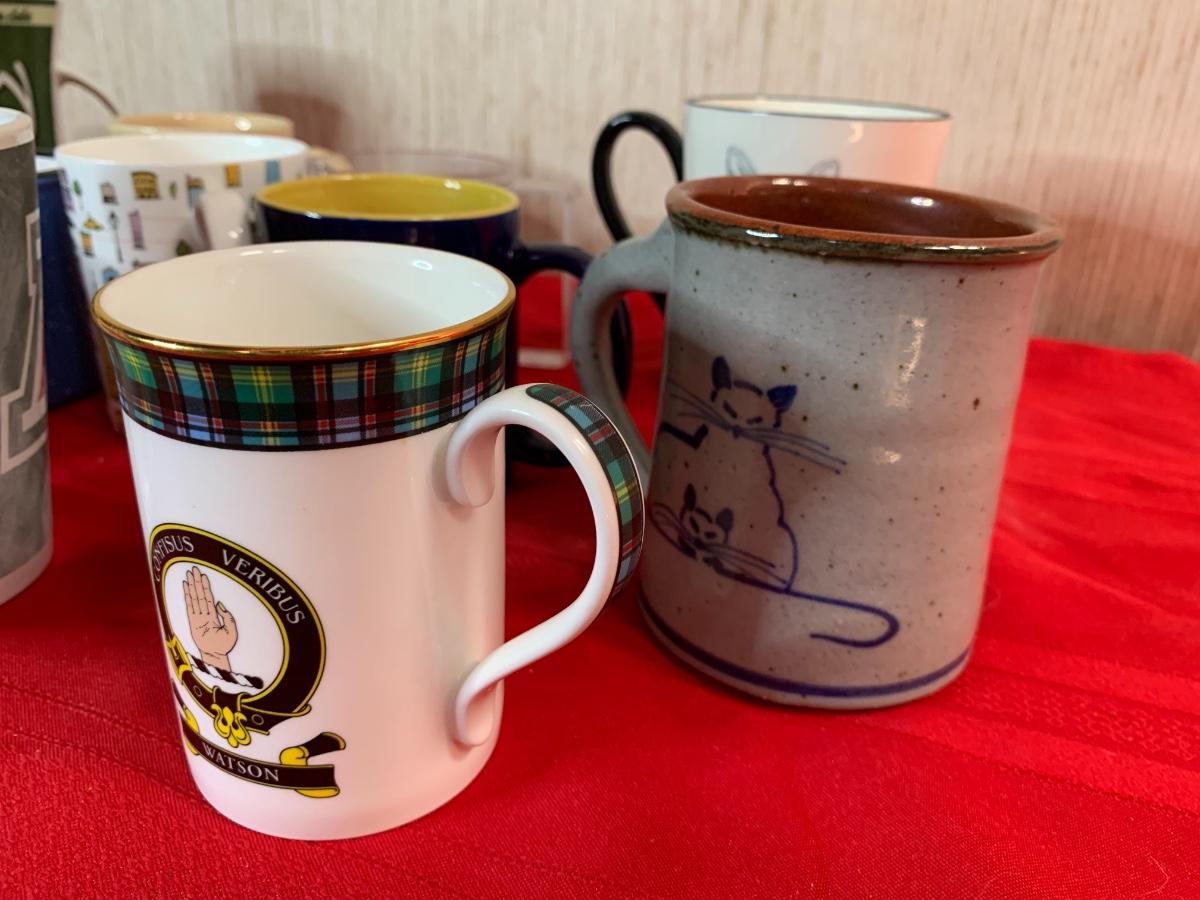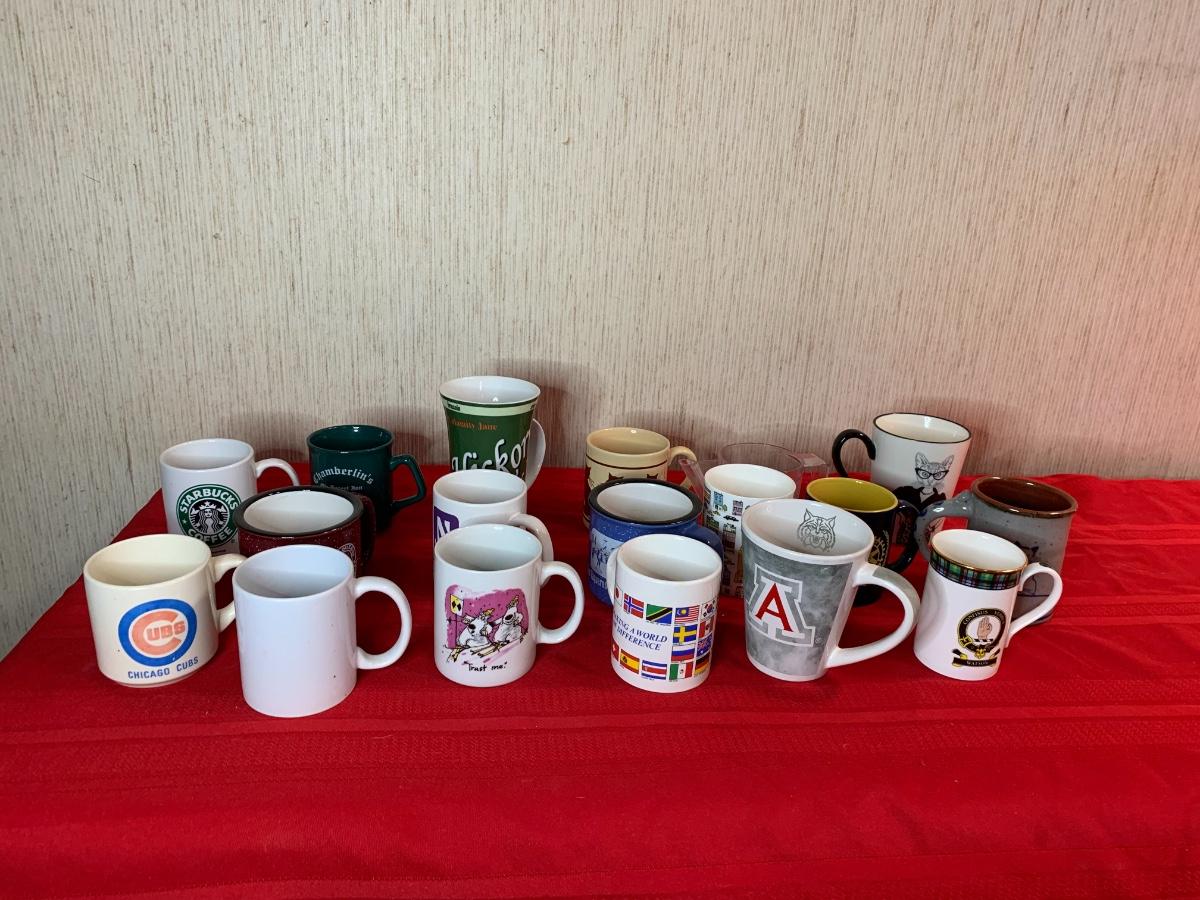 Lot of Various mugs including UofA, Cubs, cat mugs, etc.