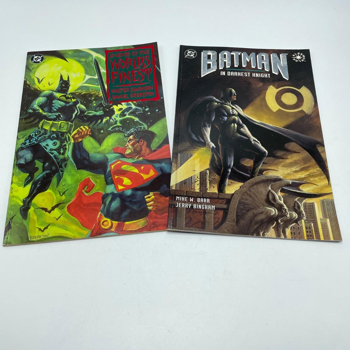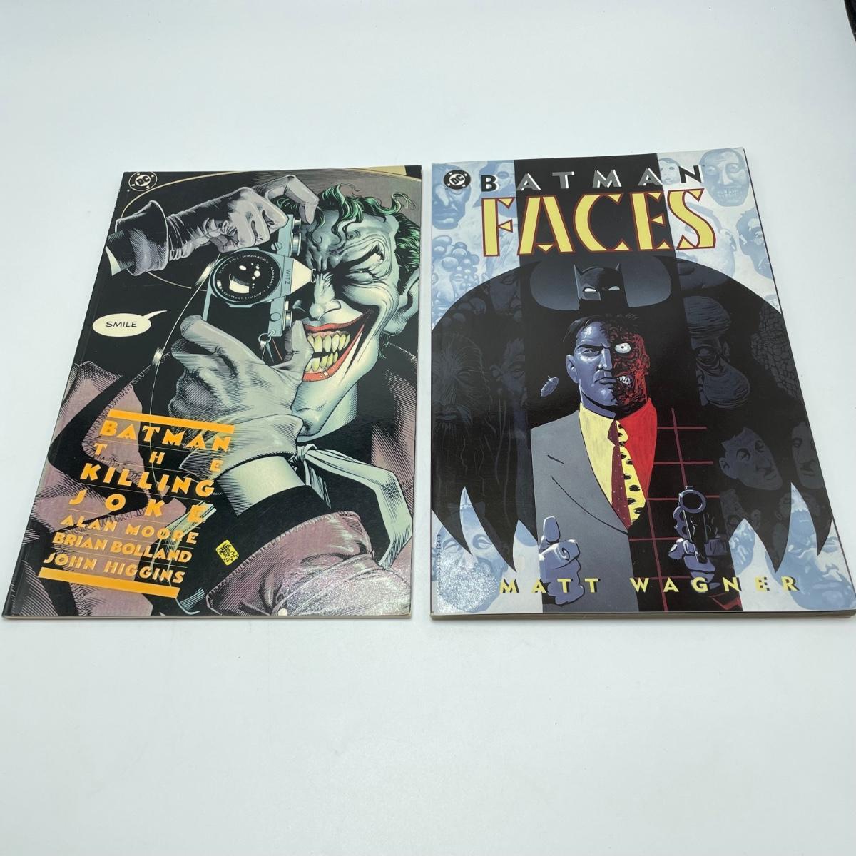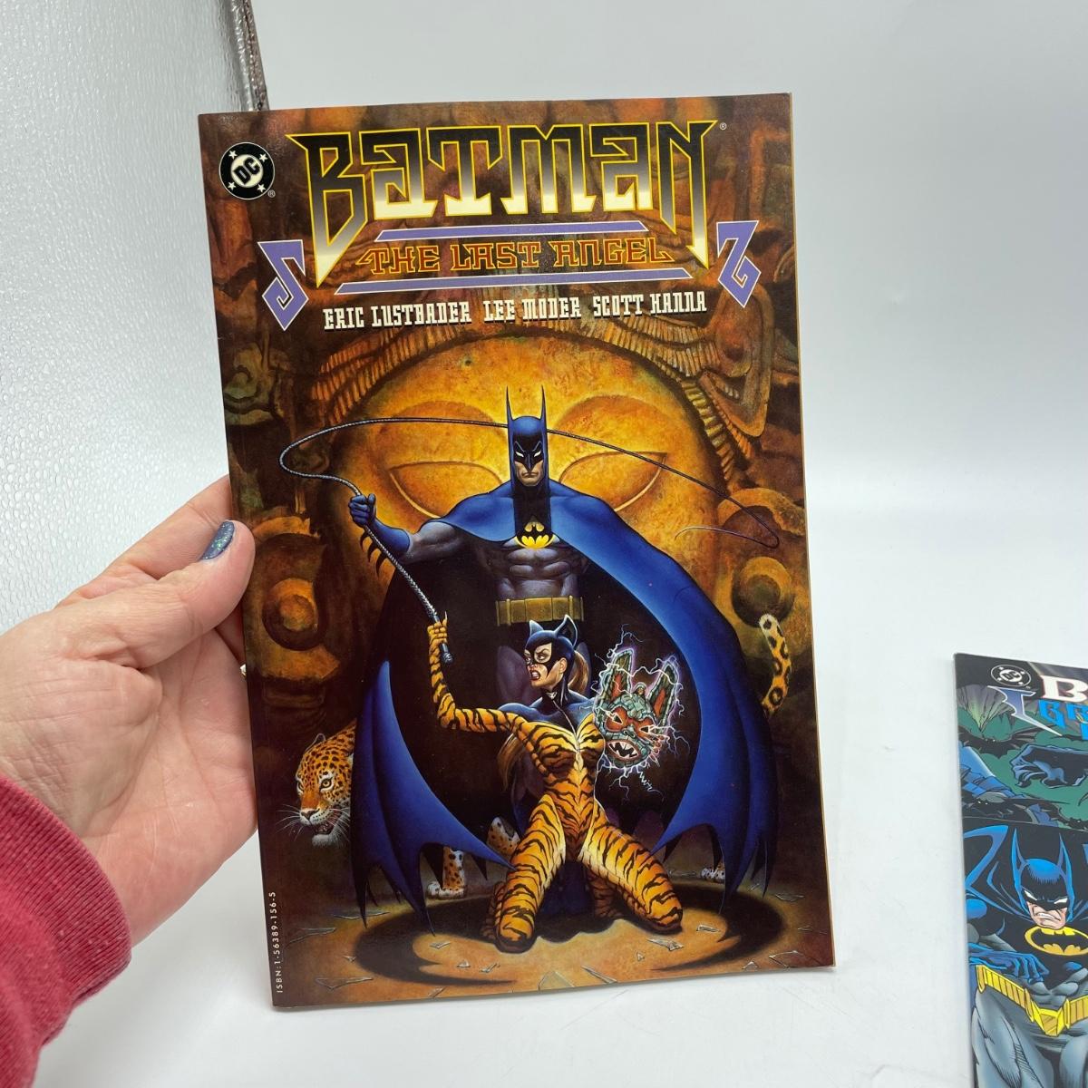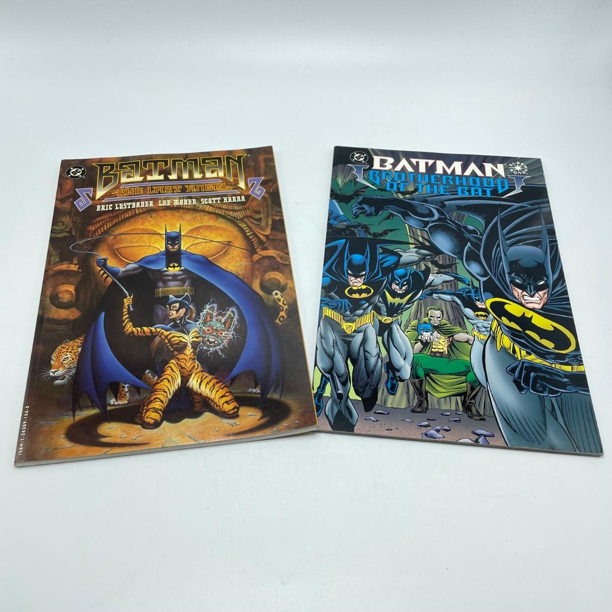 Nine Batman paperback novels from DC Comics by various artists. Lot includes The Greatest Batman Stories Ever Told Vol 2, Batman: Venom, Batman: Castle of the Bat, Batman: The Killing Joke, Batman: Faces, Batman: The Last Angel, Batman: The Brotherhood of the Bat, Legends of the World’s Finest and Batman: In Darkest Knight. See images for printing dates and artists. Items are sold as-is. No returns or refunds. Please bid accordingly.